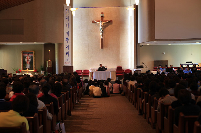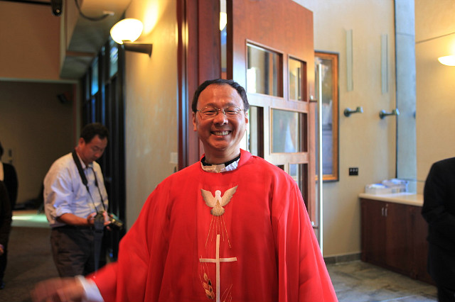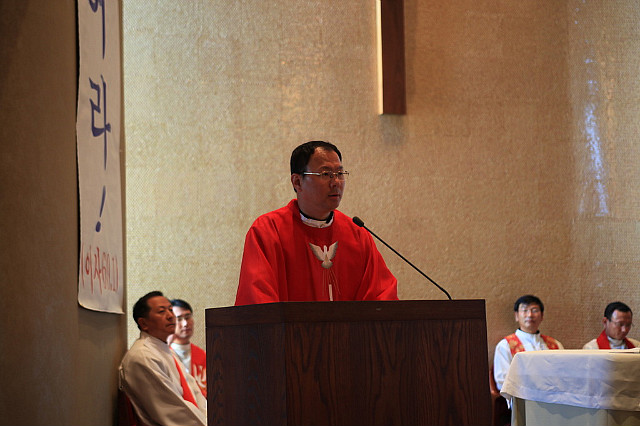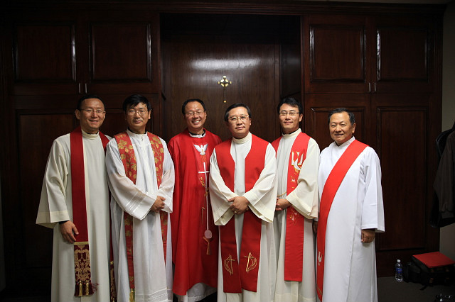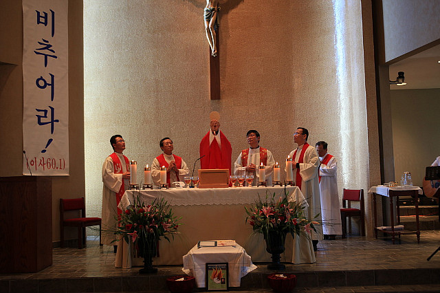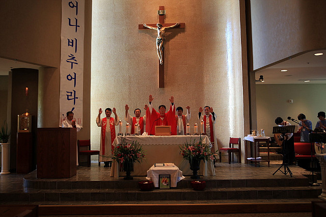 보좌신부인 유신부님, 서신부님,안신부님,나, 정신부님, 부제님(미국에는 종신 부제직이 있습니다.)