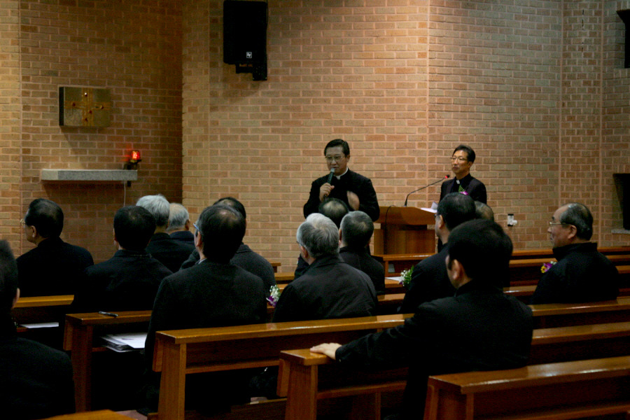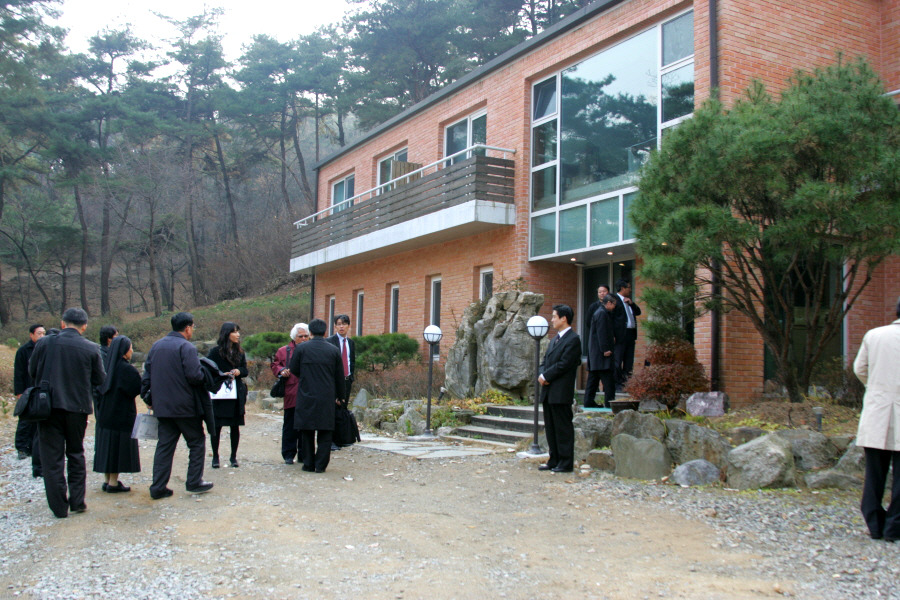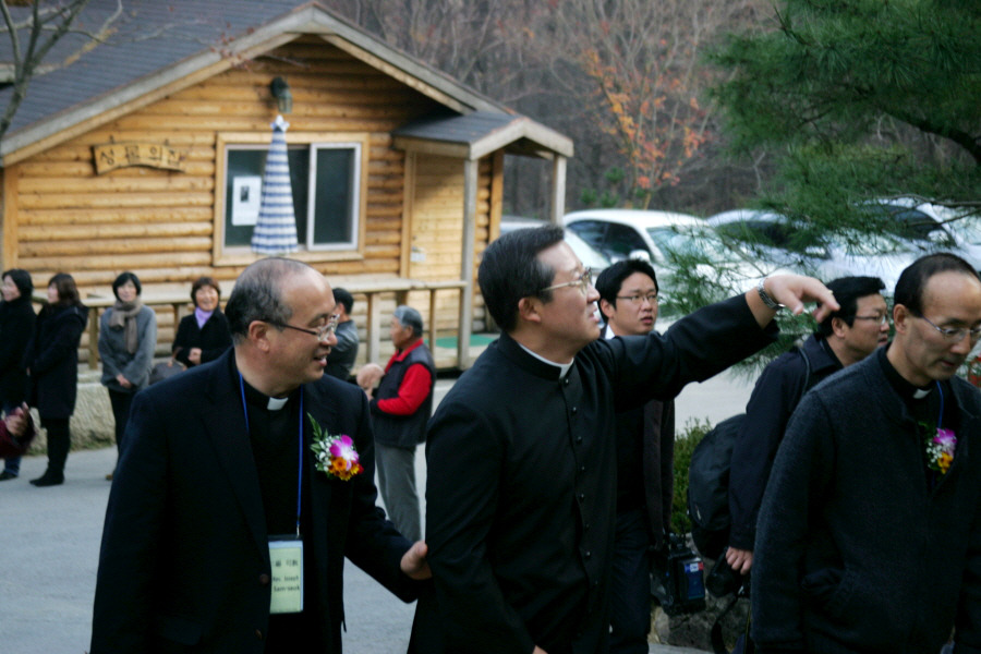 영성관 안에서 주교님들을 환영하시는 카페 가족님들