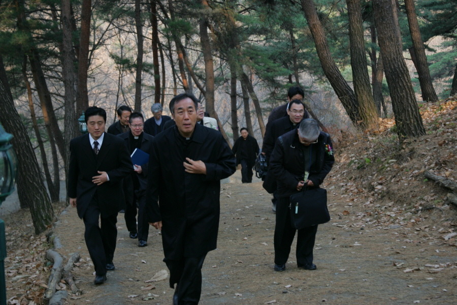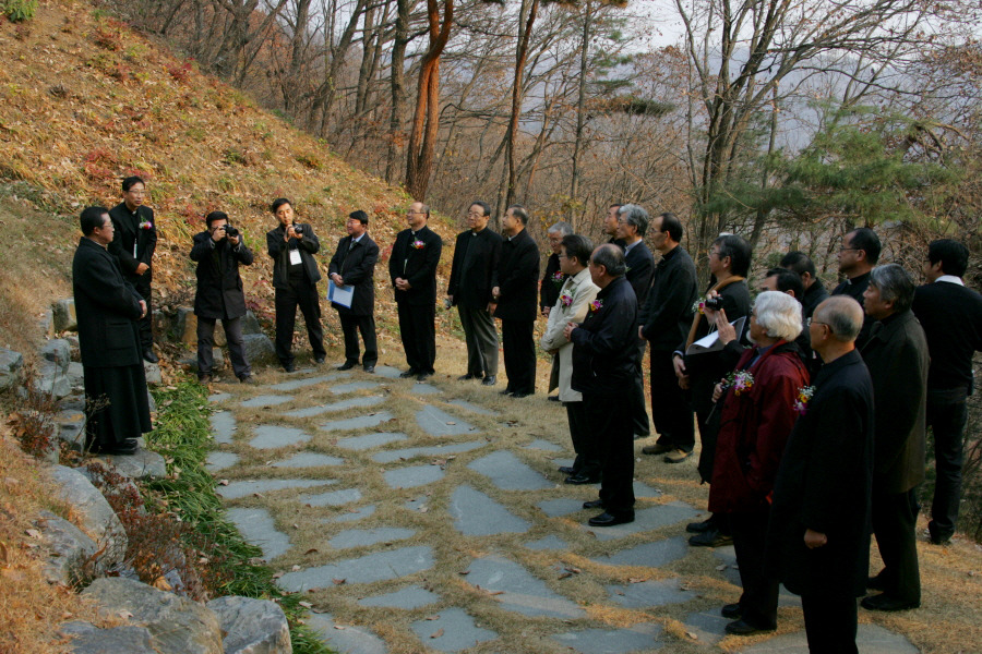 최양업 신부 성당터로 가기위해 103위 성인 계단을 오르시는