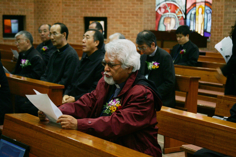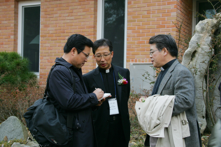 일본 주교님과 인터뷰를 하고있는 평화방송 기자님