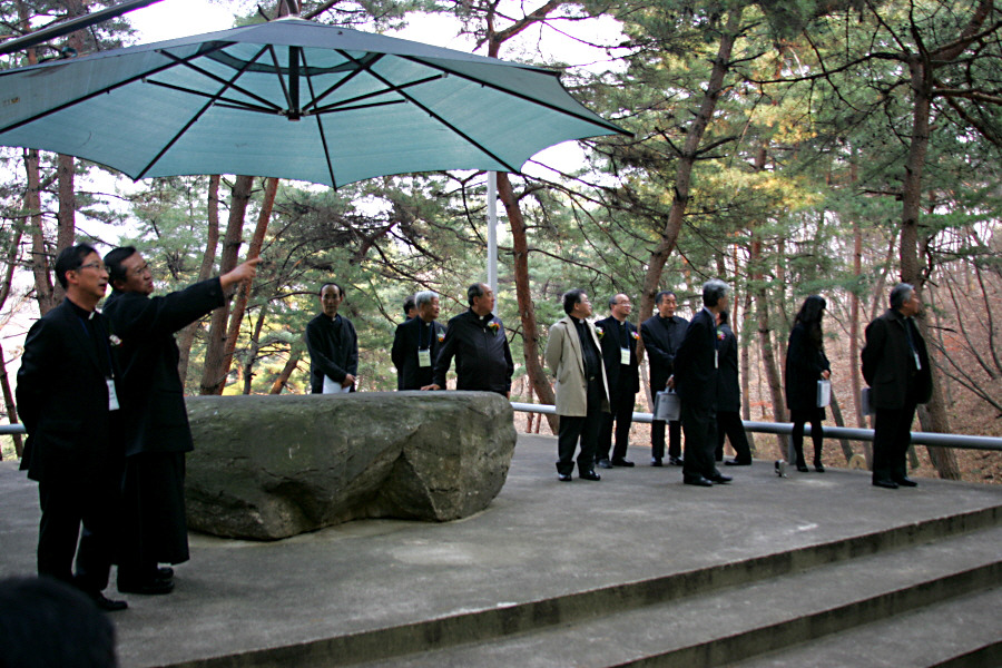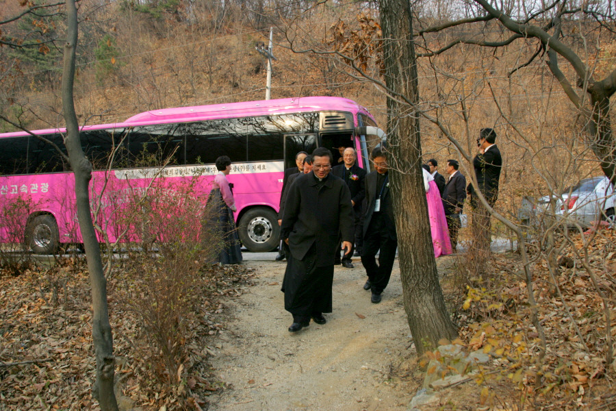 무명 순교자 14인 묘소를 방문코자 차에서 내리시어