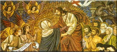 그 뒤에 계신 삼위일체이신 하느님을 보셔야 되요.