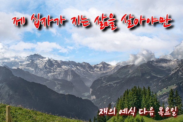 ■ 제 십자가 지는 삶을 살아야만 / 재의 예식 다음 목요일(루카 9,22-25) 어떤 이가 식사시간에 지옥구경을 갔단다. 거기는 먹을 것, 마실 물도 없는 곳으로 여겼단다. 그런데 놀랍게도 식탁엔 풍족한 음식이 차려졌지만, 둘러앉은 이들은 하나같이 삐쩍 말라 있었다나. 왜 그런가 보았더니, 그들 팔은 곧아서 음식을 집어 자기 입에 넣을 수 없었단다. 그리고는 곧장 천국에 갔단다. 물론 그곳도 팔은 구부러지지 않았다. 식탁 음식도 지옥과 별반 차이가 없었다나. 그런데 그들은 살이 쪄 모두가 행복에 차 있었다. 유심히 보니 그들은 음식을 집어서 자기 입으로가 아닌, 다른 이의 입으로 가져가 그에게 음식을 먹여 주고 있었단다. 베드로가 예수님의 신원 고백에, 예수님께서는 당신 수난과 부활을 예고하셨다. 그리고 당신을 따르려는 삶은 제 십자가를 지고 날마다 따라다녀야 한단다. 이는 오늘 우리의 삶에도 변함없이 요청되는 말씀일 게다. “누구든지 내 뒤를 따라오려면, 자신을 버리고 날마다 제 십자가를 지고 따라야 한다. 정녕 목숨을 구하려는 이는 잃을 것이고, 나 때문에 자기 목숨을 잃는 그는 구할 것이다. 사람이 온 세상을 얻고도 자기 자신을 잃거나 해치면 무슨 소용이 있느냐?”