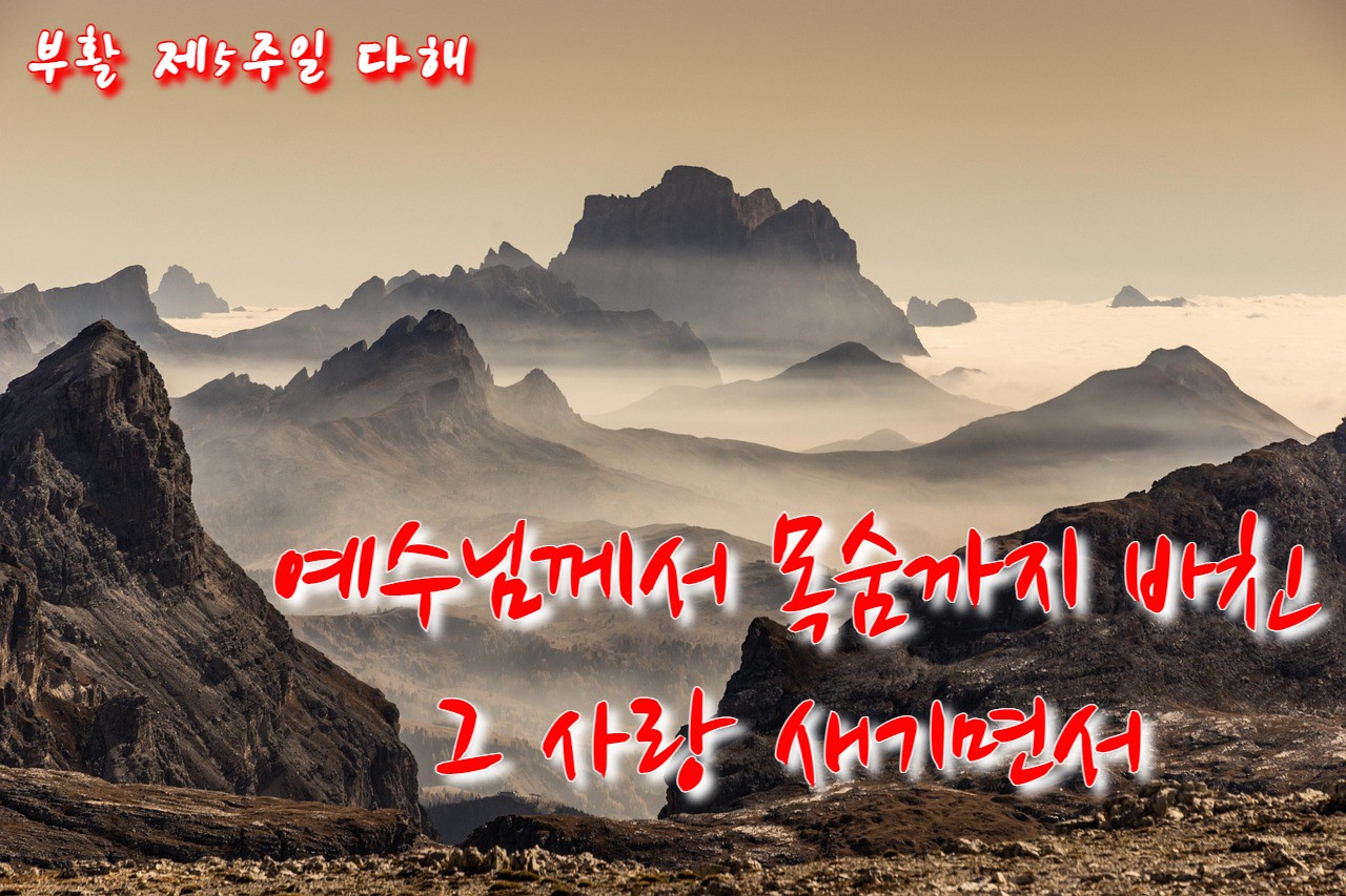 | 제목 | ■ 예수님께서 목숨까지 바친 그 사랑 새기면서 / 부활 제5주일 다해(요한 13,31-33ㄱ,34-35) | |||