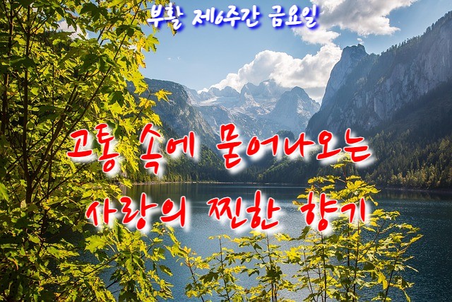 “해산할 때에 산모는 심한 고통 속에 근심에 싸인다. 진통의 시간이 왔기에. 그러나 아이를 낳으면, 사람 하나가 이 세상에 태어난 기쁨으로 그 고통을 아예 잊어버린다. 이처럼 너희도 지금은 근심에 싸이지만, 내가 너희를 다시 보면 너희 마음이 기뻐할 것이고, 그 기쁨을 아무도 너희에게서 빼앗지 못할 것이다. 그리고 그날에는 너희가 나에게 아무것도 묻지 않을 것이다.” 이처럼 예수님께서는 해산의 고통만큼 큰 고통은 없단다. 아이를 낳아 본 여자는 그 아픔을 생생하게 기억할 게다. 그러기에 어머니는 남다른 애정으로 자식을 대한다. 아픔이 컸던 만큼 애정도 큰 까닭이리라. 그렇지만 요즈음은 마취제를 이용하는 무통 분만도 있다나. 아픔이 없이 낳은 아기와의 대면은 어떠할까? 산고를 겪을 때만큼의 ‘그 눈물’을 또 흘릴 수 있었을까? 예수님의 온갖 모욕과 고통, 수난 이후의 참된 고통 뒤에 찾아오는 기쁨은 부활로써 분명하게 드러내 보이신단다. 사실 우리가 현재 체험하는 이 고통도 더 이상의 고통이 아니다. 왜냐하면 새로운 생명이 태어날 것이라는 기대와 희망이 현재의 고통을 더 이상 알 게 내버려두지 않을 수 있기에. 따라서 주님께서 마련하신 만남의 기쁨인 희망의 날을 생각하면, 현재의 고통은 더 이상 큰 고통으로 느껴지지 않으리라. 고통도 삶의 불가결한 한 요소일 테니까. 삶이란 아름답지만, 산다는 게 어쩌면 연속적으로 찾아오는 고통스러운 일들을 감당하는 것일 수 있으리라. 말년에 파킨슨병으로 고통을 당하신 요한 바오로 2세 교황님은 병자와 고통 받는 이들에게 “여러분의 고통은 결코 헛된 것이 아닙니다. 그것은 예수님께서 수행하시는 구원 사업에 참여하는 것이기에 진정 가치 있는 것입니다.” 라고 이르셨다. 수난 다음 오는 부활의 기쁨은 클 것이며, 그건 아무도 빼앗을 수 없는 기쁨이란다. 이러한 고통을 우리 이성만으로 결코 해결할 수 없고 대처할 묘한 답도 없다. 그래서 자연 신앙의 영역으로 넘어갈 수밖에. 고통을 믿음으로 받아들이는 데에 길들여진 이들은, 그 무시무시한 죽음마저도 결코 두려워하지 않을 게다. 우리는 가끔 예수님께서 매달린 십자가를 바라보며, ‘예수님께서는 왜 저렇게 고통스러운 곳에서 어리석게 돌아가셔야 했을까?’ 라고 가끔은 생각하곤 한다. 사실 제자들의 마음도 예수님의 수난 예고를 들었을 때, 낙담과 걱정, 불안과 공포로 가득 찼으리라. 그렇지만 예수님께서는 수난 후의 부활의 기쁨을 꼭 기억하라시며, 그것은 아무에게도 빼앗길 수도 없는 것이라나. 이와 같이 우리가 영적으로 새로 태어나려면, 영적인 해산의 기쁨의 순간이 있어야만 한다. 고통 없이 안락함만을 좇으며 산다는 건, 어쩌면 거짓으로 몸에 베인 자신만을 붙잡는 삶만 되리라. 아빌라의 데레사 성녀께서는 분명히 말씀하셨다. 고통이 깊은 사랑일수록 그 향기는 짙다나. 신앙인에게는 이러한 고통 속에 피어나는 사랑의 향기가, 곳곳에서 묻어나야만 할 게다.