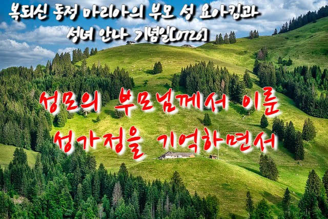 | 제목 | ■ 성모의 부모님께서 이룬 성가정을 기억하면서 / 복되신 동정 마리아의 부모 성 요아킴과 성녀 안나 기념일[0726] | |||