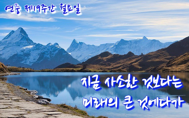 | 제목 | ■ 지금 사소한 것보다는 미래의 큰 것에다가 / 연중 제19주간 월요일 | |||