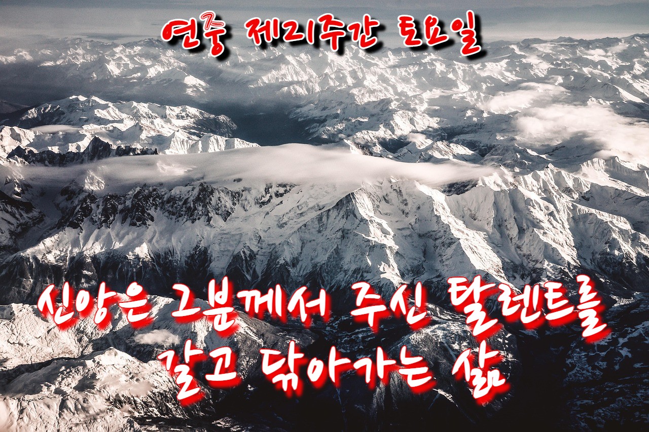 | 제목 | ■ 신앙은 그분께서 주신 탈렌트를 갈고 닦아가는 삶 / 연중 제21주간 토요일 | |||