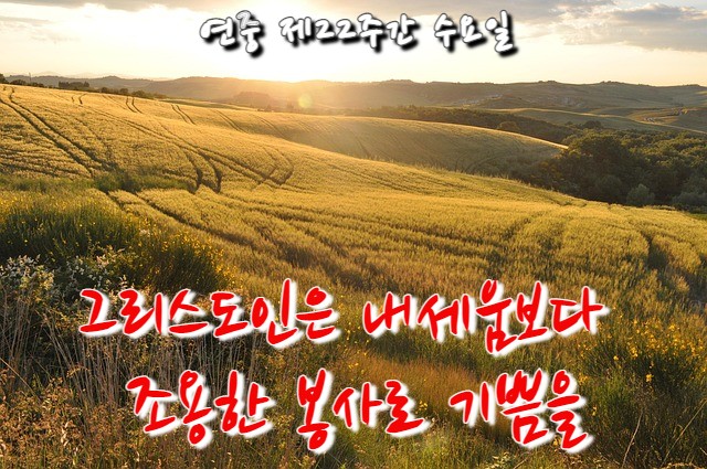제목 | ■ 그리스도인은 내세움보다 조용한 봉사로 기쁨을 / 연중 제22주간 수요일 | |||