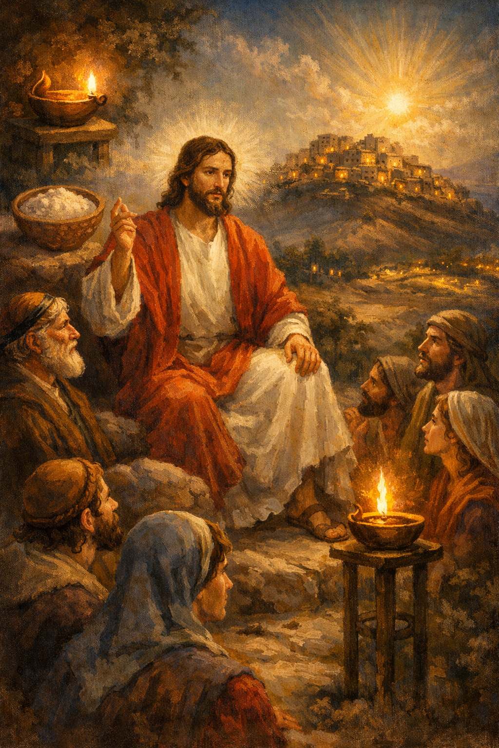 다음 이어지는 빛의 비유도 그렇습니다. 빛의 본질은 드러남과 다른 사람을 위함이라고 할 수 있습니다. 따라서 “너희는 세상의 빛이다.”(마태 5,14)라고 하시면서, 그리스도인임을 세상에 드러낼 수 있어야 한다는 것입니다. 특별히 등경 위의 등불처럼 우리의 신앙이 나만을 위한 위안을 위한 것이 아니라, 공동체와 이웃을 비추기 위한 봉사가 되어야 함을 강조하십니다.