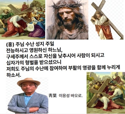 2025년 4월 13일 (홍)주님 수난 성지 주일 예수 그리스도께서 파스카 신비를 완성하시려고 예루살렘에 입성하신 것을 기념하는 날이다. 수난하시고 십자가에 못 박혀 돌아가시고 묻히셨다가 영광스럽게 부활하신 우리도 죽음에서 부활로 건너가는 파스카 신비에 동참 주님을 따라, 우리도 죽음에서 부활로 건너가는 파스카 신비에 동참합시다.