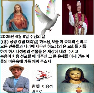 2025년 6월 8일주님의 날 [(홍) 성령 강림 대축일] 오늘은 성령 강림 대축일입니다. 우리는 한 성령 안에서 세례를 받아 한 몸이 되었습니다. 하느님께서는 각 사람에게 공동선을 위하여 성령을 드러내 보여 주셨습니다. 저마다 받은 성령의 은사에 힘입어 세상에 기쁜 소식을 전하기로 다짐합시다.