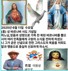 2025년 6월 11일 수요일 (홍) 성 바르나바 사도 기념일 바르나바 성인은 키프로스의 레위 지파 출신이다 바르나바는 ‘위로의 아들’이라는 뜻으로 본디 이름은 요셉이며마르코 성인의 사촌이다성령과 믿음이 충만한 사람으로 칭송받는 바르나바 사도는 유다교에서 개종한 뒤 자신의 재산을 팔아 초대 교회 공동체에 바치고 다른 사도들과 함께 열성적으로 선교하였다.성인은 60년 무렵 키프로스의 살라미스에서 순교하였다