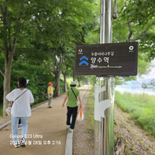 물어봤더니... 저어기~ 2킬로만 가면(30여분) 두물머리가 만나는 두물경 바위가