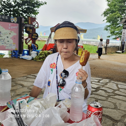 한개씩 쥐어다준 연핫도그 한개 길가 간이의자에 앉아 개눈감추듯이.. 입 싹 닦고는...