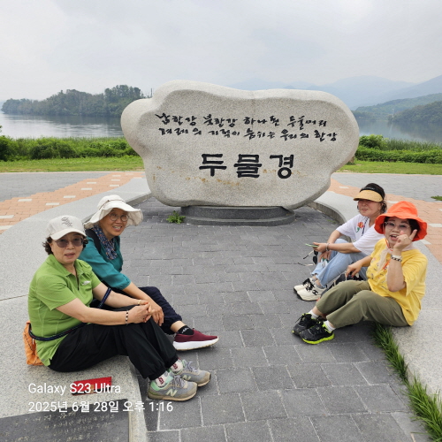 다행이도 30여분의 거리를 걸어가니 그림같은 감동의 장소 두물경 바위가 나타난다.