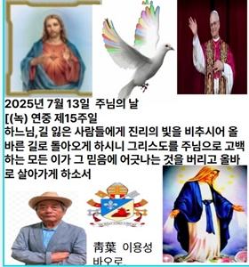 2025년 7월 13일 주님의 날 (녹) 연중 제15 주일 오늘은 연중 제15주일입니다. 자비로우신 예수님께서는 율법의 정신을 사랑의 계명으로 요약하셨습니다. 우리 모두 그분의 가르침을 따라 착한 사마리아인처럼 너그러운 마음으로 어렵고 힘든 형제들을 도웁시다.