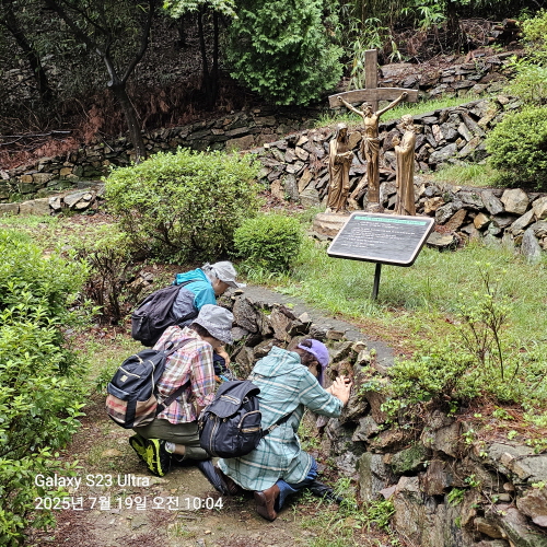 고택성당 건너편 개울넘어 산으로 오르는 십자가길 기도길을 부지런히 오른다.