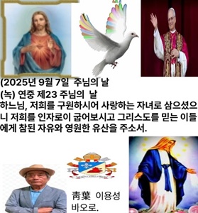 2025년 9월 7일 주님의 날 (녹) 연중 제23주일 오늘은 연중 제23주일입니다. 하느님께서는 우리가 이 세상 재물을 분별하여 쓰고 천상 사물을 알아보도록 이끄십니다. 우리가 그리스도의 충실한 제자로서 날마다 십자가를 지고 그리스도를 따르도록 성령의 지혜를 주시기를 청합시다.