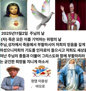 .2025년 11월 02일 주님의 날 (자) 죽은 모든 이를 기억하는 위령의 날 예수님이 돌아가셨다가 다시 살아나셨듯이, 하느님은 예수님을 통하여 죽은 이들을 예수님과 함께 데려가시리라. 아담 안에서는 모든 사람이 죽었지만, 그리스도 안에서는 모든 사람이 살아나리라.