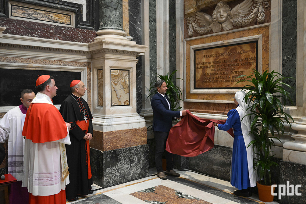 4월 21일 로마 성모 대성전에서 열린 명판 제막식에 참석한 로마교구 총대리 발도 레이나(오른쪽) 추기경과 성모 대성전 수석 사제 롤란다스 마크리카스 추기경. OSV 프란치스코 교황 선종 1주기를 맞아 로마에서 추모 미사가 4월 21일 봉헌됐다. 이 시기 아..