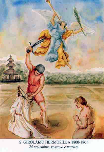 베트남에 복음이 전해진 것은 1533년경 중국으로 가던 유럽 포르투갈의 선교사들에 의해서 시작되었다. 그 후 선교 사업이 간헐적으로 이루어지다가 1615년에 예수회가 파견되어 정식으로 복음을 전하였다. ‘베트남의 사도’로도 불리는 예수회의 알렉상드르 드 로드(Alexandre de Rhodes) 신부는 1623년 성탄절에 이곳에 도착하여 1645년까지 추방과 재추방을 거듭하면서도 수많은 베트남인에게 세례를 준 것으로 전해지고 있다. 1645년부터 1886년까지 그리스도교 신자를 탄압하는 칙령이 53건 반포되었는데, 거의 3세기에 걸쳐 혹독한 박해가 이어지면서 전국적으로 약 13만 명이 희생되었다. 박해가 계속될수록 더 잔혹해졌는데, 뜨득 황제(Tu Duc, 1847~1883년 재위) 통치 중에는 선교사들을 체포하기 위해 거액의 상금을 걸고 사제와 외국인 교리 교사들을 학살하였다. 베트남 출신 교리 교사들의 뺨에는 ‘거짓 종교’를 뜻하는 ‘타다오’(Ta dao)라는 글자로 낙인을 찍어 대중의 경멸을 받도록 했다. 신자들은 재판관 앞에서 십자가를 짓밟으면 목숨을 구할 수 있었지만, 그러지 않으면 재산을 몰수당하고 가족과 떨어져 추방되거나 처형당했다. 17세기에 시작된 박해가 계속 이어지고 19세기에도 더욱 잔인한 박해가 계속되자 프랑스는 이를 막기 위해 1862년 베트남을 침략했고, 1883년에 베트남을 식민지화함으로써 박해를 종식하였다. 이때까지 박해를 받고 순교한 이들에 대한 시복시성 절차가 시작되어 1900년 5월 27일 교황 레오 13세(Leo XIII)에 의해 64위가 복자품에 올랐다. 그리고 1906년 5월 20일에 교황 성 비오 10세(Pius X)는 베트남에서 순교한 도미니코 수도회 소속 8위를 시복하고, 1909년 5월 2일 20위의 순교자를 복자품에 올렸다. 1951년 4월 29일 네 번째로 25위의 순교자가 교황 비오 12세에 의해 시복되었다. 교황 성 요한 바오로 2세(Joannes Paulus II)는 1988년 6월 19일 바티칸의 성 베드로 광장에서 117위 베트남의 순교복자에 대한 시성식을 거행하였다. 안남(Annam) 또는 통킹(Tonkin)의 순교자들로도 불리는 117위의 베트남 순교자들은 출신별로 보면 96위의 베트남인과 에스파냐 출신 도미니코 수도회 소속 선교사 11위 그리고 프랑스 출신 파리 외방전교회 소속 선교사 10위가 포함되어 있다. 신분별로 보면 8위의 에스파냐와 프랑스 출신 주교들, 50위의 사제들(에스파냐와 프랑스 출신 13위와 베트남 출신 37위), 59위의 베트남 평신도들로 구성되어 있다. 성 히에로니무스 에르모실라(Hieronymus Hermosila, 또는 예로니모 에르모실라)는 1800년 9월 30일 에스파냐 중북부 부르고스(Burgos) 근처 산토도밍고데라칼사다(Santo Domingo de la Calzada)에서 태어났다. 10살 때 아버지를 여의고 어머니를 도와 가족의 생계를 돌보다가 19살에 도미니코 수도회에 입회하여 1823년 종신서원을 하고 부제품을 받았다. 그리고 이듬해에 다른 동료들과 함께 필리핀의 마닐라(Manila)로 파견되어 그곳에서 신학 공부를 하고 1828년에 사제품을 받았다. 1829년에 그는 선교사로서 베트남 북부 통킹으로 파견되어 현지 언어를 배우며 교리 교사들과 함께 복음을 전했다. 그는 1838년 7월 12일 순교한 성 클레멘스 이냐시오 델가도 세브리안(Clemens Ignatius Delgado Cebrian) 주교의 뒤를 이어 대목구장이 되었고, 1841년 3월 25일에 주교품을 받았다. 당시 주교가 된다는 것은 당국으로부터 체포 우선순위에 올라 순교를 눈앞에 둔 것과 같았다. 그는 7년 정도 비교적 평화로운 기간 동안 전임자와 순교자들의 유해를 수습하고 목격자들의 증언에 따라 순교록을 작성했다. 그리고 파괴된 성당을 보수하고 교리문답을 가르칠 학교를 열었으며 배교자들의 신앙을 되돌리고자 노력했다. 이렇게 20년간 주교로 활동하면서 양 떼를 지키기 위해 헌신하던 중 한 배교자의 고발로 성사를 집전하러 가다가 군인들에게 체포되었다. 1861년 10월 21일 체포되어 하노이(Hanoi) 근처 하이즈엉(Hai Duong)으로 압송된 그는 감옥에서 혹독한 고문을 받고 그해 11월 1일 하이즈엉 처형장에서 성 발렌티노 베리오초아(Valentinus Berriochoa) 주교와 성 베드로 알마토 리베라(Petrus Almato Ribera) 신부와 함께 참수형을 받고 순교하였다. 성 예로니모 에르모실라 주교는 1906년 5월 20일 교황 성 비오 10세에 의해 시복되었다. 그리고 1988년 6월 19일 교황 성 요한 바오로 2세에 의해 로마의 성 베드로 광장에서 ‘성 안드레아 둥락 사제와 116위의 동료 순교자들’의 일원으로 성인품에 올랐다. 교황 성 요한 바오로 2세는 시성식 강론을 통해 혹독한 박해를 이기고 영웅적인 모범을 보인 순교자들의 용기와 신앙심에 대해 아낌없는 칭찬을 보내며, 그들의 축일을 11월 24일에 기념하도록 보편교회 전례력에 포함하였다. 2001년 개정 발행되어 2004년 일부 수정 및 추가한 “로마 순교록”은 11월 1일 목록에서 오늘날 베트남에 속한 통킹의 하이즈엉에서 거룩한 순교자 성 예로니모 에르모실라 주교와 성 발렌티노 베리오초아 주교, 그리고 도미니코 수도회의 성 베드로 알마토 리베라 신부가 뜨득 황제의 명령으로 참수되었다고 전해주었다. 그리고 11월 24일 목록에서는 성 안드레아 둥락 사제와 동료 순교자들을 기념하는 날로, 이날 베트남 여러 지