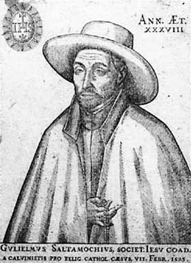 야고보 살레(Jacobus Sales)는 프랑스 중남부 오베르뉴(Auvergne) 태생으로 부친의 도움으로 빌롱의 예수회 대학에 들어갔다가 17세 때에 수련자가 되었다. 그리고 빌리암 솔트무슈는 그 대학에 고용된 젊은이였으나 나중에 평수사가 되었다. 그 후 야고보는 파리(Paris)에서 수학하던 중에 인도 선교를 지망하였다. 그런데 야고보의 설교 능력과 지도력을 인정한 장상은 그를 보내려다가 취소하고 오버나스(Aubenas)로 파견하였다. 이때 빌리암이 야고보를 수행하였다. 이 지역은 칼뱅파가 주도하는 지역이었다. 야고보의 선교가 매우 성공적인 조짐을 보이자 칼뱅파에서 사람들을 보내어 야고보 신부를 난자하였고, 빌리암은 그의 시신을 움켜잡은 채 운명하였다. 빌리암 솔트무슈는 윌리엄 솔트무슈 또는 빌헬름(Wilhelm) 솔트무슈로도 불린다. 그들은 1926년 교황 비오 11세(Pius XI)에 의해 시복되었다.