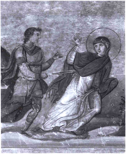 둘치시우스 총독이 테살로니카에서 잔인한 박해를 계속할 때 연일 수많은 그리스도인들이 모여들어 집회를 계속하였다. 천애고아인 성녀 아니시아가 신자들의 모임에 참석하기 위하여 카산드라 성문을 지날 때였다. 파수꾼 한 명이 그녀를 보고는 어디 가는 길이냐고 묻자, 위험을 느낀 아니시아는 엉겁결에 십자성호를 그으면서 뒷걸음질을 쳤다. 이에 군인 한 명이 뛰어와서 “너는 누구이며, 어디로 가느냐?”고 다그치자 그녀는 아주 태연하게, “저는 예수 그리스도의 종입니다. 주님의 모임에 갑니다.” 하고 대답하였다. “못 간다. 그 대신 너는 신전에 희생을 바쳐라" 하고 강요하였다. 그녀가 말을 듣지 않자 베일을 벗겨 버렸다. 이어 그 군인은 그녀를 칼로 난자하여 성문에서 죽였다. 후일 테살로니카에 평화가 찾아들었을 때 교우들은 그녀가 순교한 자리에 기도소를 세우고 용감한 그녀의 신앙을 기렸다고 한다.