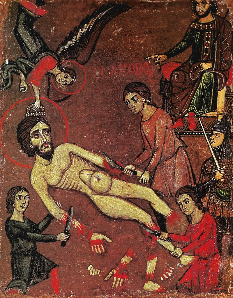 성 야코부스 인테르키수스(Jacobus Intercisus, 또는 야고보 인테르치소 또는 야고보)는 4세기에 오늘날 이란 서부 후제스탄주(Khuzestan州)에 있는 베트 라파트(Beth Lapat, 페르시아의 군데샤푸르[Gundeshapur]로 수사[Susa]와 슈슈타르[Shushtar] 사이에 샤푸르 1세가 건설한 도시)에서 태어났다. 그는 저명한 시리아계 그리스도인 귀족 가문 출신으로 타고난 혈통과 뛰어난 자질로 인해 페르시아 제국 야즈데게르드 1세(Yazdegerd I, 399~420년 재위) 왕의 궁정에서 중요한 지위에 올랐다. 당시 페르시아의 그리스도교는 샤푸르 2세(Shapur II, 309~379년 재위) 왕의 죽음으로 잔혹하고 긴 대박해가 끝나고 야즈데게르드 1세 왕의 치세까지 비교적 평화로운 시기를 보내고 있었다. 마르티르폴리스(Martyropolis)의 성 마루타스(Maruthas, 2월 16일) 주교는 야즈데게르드 1세 왕을 설득해 박해로 인해 무너진 하느님의 교회를 재건하고 다시 조직하는데 헌신하였다. 그런데 뜻하지 않은 일이 발생했다. 420년에 수사(Susa, 오늘날 이란 서부 후제스탄주의 슈시[Shush]에 있었던 고대 도시)의 주교인 성 아브다스(Abdas, 5월 16일)가 선교 열정에 불타올라 아르골(Argol)에 있는 페르시아의 성소인 피라에움(Pyraeum, 불의 사원)을 불태워버렸다. 이에 분노한 야즈데게르드 1세는 성 아브다스 주교가 사원을 재건하지 않으면 모든 그리스도교 성당을 파괴하겠다고 경고했다. 성 아브다스는 우상을 숭배하는 사원을 재건하는데 한 푼도 낼 수 없다며 제안을 거부하고 동료들과 함께 순교를 선택했다. 이를 계기로 그리스도교에 대한 광범위한 박해가 시작되었다. 이때 성 야고보는 박해를 모면하기 위해 신앙을 포기하였다. 420년 1월 21일 야즈데게르드 1세가 페르시아 귀족들에 의해 암살당한 후 그의 아들인 바흐람 5세(Bahram V, 420~438년 재위)가 왕위를 계승한 후에도 박해는 계속되었다. 야즈데게르드 1세가 사망한 후 성 야고보의 어머니와 아내가 그에게 편지를 써서 보냈다. 그 편지에서 세상의 왕이 누리는 권력과 장차 썩어 없어질 재물을 위해 하느님을 버렸다는 말을 들었다며, 지금 그 왕이 어디에 있냐고 물었다. 다른 사람과 마찬가지로 죽어 먼지가 되었는데, 끝까지 하느님을 배신한다면 하느님의 심판을 피할 수 없을 것이라고 했다. 성 야고보는 편지를 읽고 깊이 감동하며 부끄러움에 지난 일들을 후회하였다. 그리고 바흐람 5세의 궁정에서 누리던 모든 것들을 포기하고 스스로 물러났다. 그러면서 그가 다시 그리스도교로 돌아섰음이 밝혀져 체포되어 감옥에 갇혔다. 그는 심문과 고문을 받으면서 끝까지 굴복하지 않았다. 결국 그는 왕의 호의를 무시한 배은망덕한 사람으로 낙인찍혀 모든 재산이 몰수되고 가장 잔인한 형벌인 ‘인테르치소’를 받는 사형이 선고되었다. 이는 손가락과 발가락을 차례로 자른 다음 발, 손, 팔, 다리를 절단한 후 참수로 마감하는 형벌이었다. 그로 인해 성 야고보는 온몸이 절단되었다는 뜻에서 성 야고보 인테르치소(Jacobus Intercisus, James the Mutilated)로 불리게 되었다. 성 야고보가 순교한 후 왕은 그리스도인들이 순교자의 유물을 공경한다는 사실을 알고 그의 유해를 불태우라고 명령했다. 하지만 일부 그리스도인들이 기회를 노려 조각난 유해를 확보한 후 관에 넣고 40일 동안 걸어서 예루살렘의 이베리아 수도원에 안치하였다. 옛 “로마 순교록”과 2001년 개정 발행되어 2004년 일부 수정 및 추가한 “로마 순교록” 모두 11월 27일 목록에서 페르시아에 성 야고보 인테르치소 순교자가 있었다고 전해주었다. 그는 비잔틴 제국의 테오도시우스 2세 황제(Theodosius II, 408~450년 재위) 시대에 페르시아의 야즈데게르드 1세 왕에게 복종해 그리스도를 부인했지만, 엄하게 질책하는 어머니와 아내의 편지를 받고 회개하여 후임 왕인 바흐람 5세 앞에서 용감하게 그리스도교 신앙을 고백하였다. 그러자 분노한 왕은 그에게 사형을 선고하며 그를 조각조각 자르고 참수하라고 명령하였다. 이 시기에 페르시아에서는 성 야고보 외에도 많은 그리스도인이 순교하였다.♣