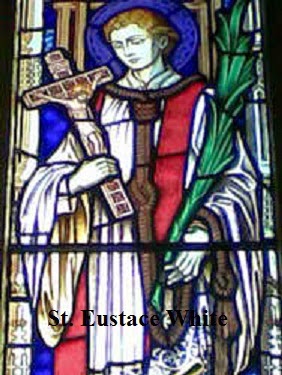 성 에우스타시우스 화이트(Eustasius White, 또는 에우스타시오 화이트)는 1559년 영국 잉글랜드 링컨셔(Lincolnshire)의 라우스(Louth)에서 태어났다. 그는 가톨릭으로 개종하면서 아버지와는 의절하게 되었다. 그는 사제직을 준비하기 위해 프랑스의 랭스(Reims)로 건너갔다가 로마의 가톨릭 신학교인 영국 대학에서 수학하고 1588년 사제품을 받았다. 그는 그해 말 선교사로서 잉글랜드로 돌아왔는데, 당시 영국 내에는 반가톨릭 정서가 상당히 심각한 때였다. 그는 주로 잉글랜드 서부에서 활동했는데, 1591년 9월 1일 종교에 대해 함께 대화를 나눈 한 변호사의 배신으로 도싯(Dorset)의 블랜드퍼드(Blandford)에서 체포되었다. 그 후 그는 런던으로 이송되어 심문과 고문을 받고 가톨릭 사제로서 국법을 어기고 영국에 입국한 혐의로 사형을 선고받았다. 그는 1591년 12월 10일 런던의 타이번(Tyburn)으로 끌려가 교수형과 극형을 받고 순교하였다. 그날 그 자리에서 성 폴리도로 플라스딘(Polydorus Plasden) 신부와 다른 세 명의 평신도들도 함께 순교하였다. 성 에우스타시오 화이트 신부는 1929년 12월 15일 교황 비오 11세(Pius XI)에 의해 시복되었고, 1970년 10월 25일 교황 성 바오로 6세(Paulus VI)에 의해 ‘잉글랜드와 웨일스의 40위 순교자’(The Forty Martyrs of England and Wales) 중 한 명으로 성인품에 올랐다. 그의 축일은 개인적으로는 순교한 날인 12월 10일에 기념하고, 시성 후에는 40위 순교자의 일원으로서 시성일인 10월 25일에 기념해 왔었다. 2000년에 잉글랜드와 웨일스 교회의 새 전례력이 교황청에서 승인된 이후 40위 순교자들의 축일은 5월 4일로 옮겨져 종교개혁 시대에 순교한 모든 복자 · 성인들과 함께 ‘영국의 순교자’(The English Martyrs)라는 이름으로 전례 안에서 기념하고 있다. 이날은 종교개혁 시대 영국에서 순교한 영국 성공회의 순교자와 성인들의 기념일과 같은 날이다. 2001년 개정 발행되어 2004년 일부 수정 및 추가한 “로마 순교록”은 12월 10일 목록에서 가톨릭 사제로서 영국에 입국해 활동했다는 이유로 성 폴리도로 플라스딘과 성 에우스타시오 화이트 신부가 몇몇 신자와 함께 런던의 타이번으로 끌려가 순교했다고 기록하였다.♣