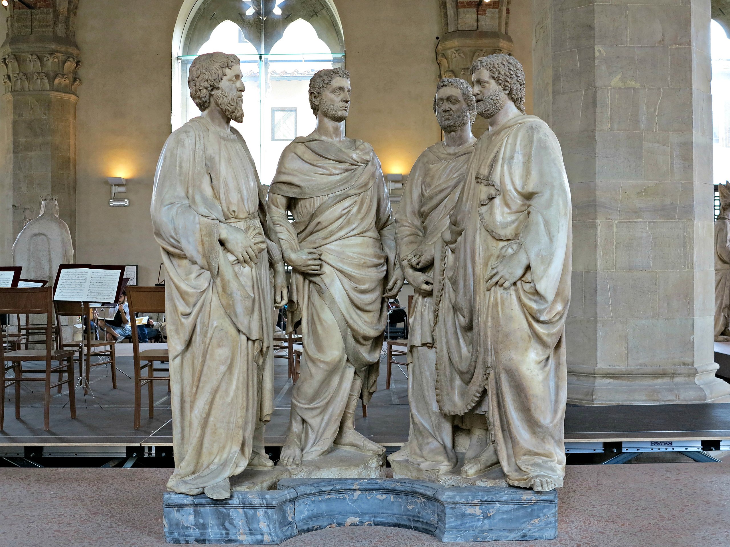 옛 “로마 순교록”은 11월 8일 목록에서 디오클레티아누스 황제의 박해 때 순교한 9명의 순교자에 대해 전해주었다. 그들은 보통 ‘월계관을 쓴 네 명의 성인(순교자)’([라] Sancti Quatuor Coronati, [영] Four Crowned Martyrs)라는 별칭으로 불렸는데, 실제 그들은 두 그룹의 순교자들로 모두 8명 또는 9명의 순교자 이야기가 다소 혼란스럽게 섞여 있다. 첫 번째 그룹은 로마(Roma)에서 약 25km 떨어진 아피아 가도(Via Appia)에 있는 알바노(Albano)에서 순교한 로마 군인들로 성 세쿤도(Secundus), 성 카르포포로(Carpophorus), 성 빅토리노(Victorinus), 성 세베리아노(Severianus)이다. 그들은 3세기 말 또는 4세기 초 디오클레티아누스 황제의 박해 때 로마의 우상인 아이스쿨라피우스(Aesculapius, 또는 아스클레피오스[Asklepios]) 신상에 제사 바치기를 거부해 납으로 된 채찍에 맞아 순교하였다. 그 뒤에 그들의 시신이 로마에서 약 6km 거리에 있는 라비카나 가도(Via Lavicana)의 성 마르첼리노와 베드로 묘지에 묻혔다는 사실 외에 더 자세한 순교 행적은 알려지지 않았고, 그들의 이름조차 알 수 없어서 ‘월계관을 쓴 네 명의 순교자(성인)’라는 별칭으로 불렸다. 나중에(전승에 따라 몇 년 후 또는 7세기경) 주님의 계시로 그들의 이름이 알려졌지만, 이미 그 전부터 교황 성 밀티아데스(Miltiades, 311~314년 재위, 1월 10일)는 오늘날 크로아티아와 세르비아에 속한 판노니아의 시르미움(Syrmium)에서 순교한 네 명 또는 다섯 명(성 심플리치오 포함)의 조각가 순교자들과 함께 11월 8일에 그들을 기념하도록 했다. 아울러 판노니아 다섯 명의 순교자들 이름 다음에 알바노 순교자 네 명을 함께 기억하며 ‘월계관을 쓴 네 명의 순교자(성인)’라는 별칭으로 계속 기념하도록 했다. 한편 2001년 개정 발행되어 2004년 일부 수정 및 추가한 “로마 순교록”은 8월 8일 목록에서 ‘월계관을 쓴 네 명의 순교자’로 알려진 첫 번째 그룹의 이름을 전해주었는데, 옛 “로마 순교록”이나 복자 야고보 데 보라지네(Jacobus de Voragine, 7월 13일)의 “황금 전설”(Legenda Aurea)에서 성 세베로(Severus)로 알려준 이름을 성 세쿤도로 바꿔 기록하였다. 두 번째 그룹은 앞에서 언급한 306년 판노니아의 시르미움에 순교한 5명의 석재 조각가들이다. 그들의 조각 작품은 디오클레티아누스 황제에게 깊은 인상을 심어주었고, 황제는 그들에게 많은 조각상을 부탁하면서 로마인들이 의술의 신으로 숭배하는 아이스쿨라피우스 상을 조각하라고 명하였다. 하지만 그리스도인이었던 성 심포리아노(Symphorianus), 성 클라우디우스(또는 클라우디오), 성 니코스트라토(Nicostratus), 성 카스토리오(Castorius), 성 심플리치오(Simplicius)는 예수 그리스도의 이름으로 우상 조각과 희생 제물 바치기를 모두 거부해 황제의 명으로 사형을 선고받았다. 그들은 감옥에 갇혀 납 채찍으로 매를 맞고 모진 고문을 당한 후 산 채로 납으로 만든 관에 담겨 사바강(Sava R.)으로 던져졌다. 그들의 유해는 후에 로마의 라비카나 가도(Via Lavicana)로 옮겨져 안장되었고, 그들을 기념해 로마의 첼리오(Celio) 언덕에 건립된 성당은 ‘월계관을 쓴 네 명의 성인’(Santi Quattro Coronati)에게 봉헌되었다. 교회 미술에서 그들은 석공의 도구를 든 네 명 또는 다섯 명의 조각가로 그려지고 있으며, 조각가와 석공 길드의 수호성인으로 공경을 받고 있다. 2001년 개정 발행되어 2004년 일부 수정 및 추가한 “로마 순교록”은 11월 8일 목록에서 두 번째 그룹인 판노니아의 조각가 순교자들의 이름과 순교 과정을 전해주며, 그들에 대한 공경이 이미 고대부터 로마의 ‘월계관을 쓴 네 명의 성인 성당’에서 활발히 이루어졌다고 기록하였다. 그리고 8월 8일 목록에서는 알바노에서 순교한 네 명의 순교자 이름만 간단히 전해주었다. 그럼으로써 옛 “로마 순교록”이 11월 8일 목록에서 로마에서 기념한다고 전해준 9명의 순교자를 판노니아의 다섯 순교자와 알바노의 네 순교자로 나눠서 기록하였다.♣