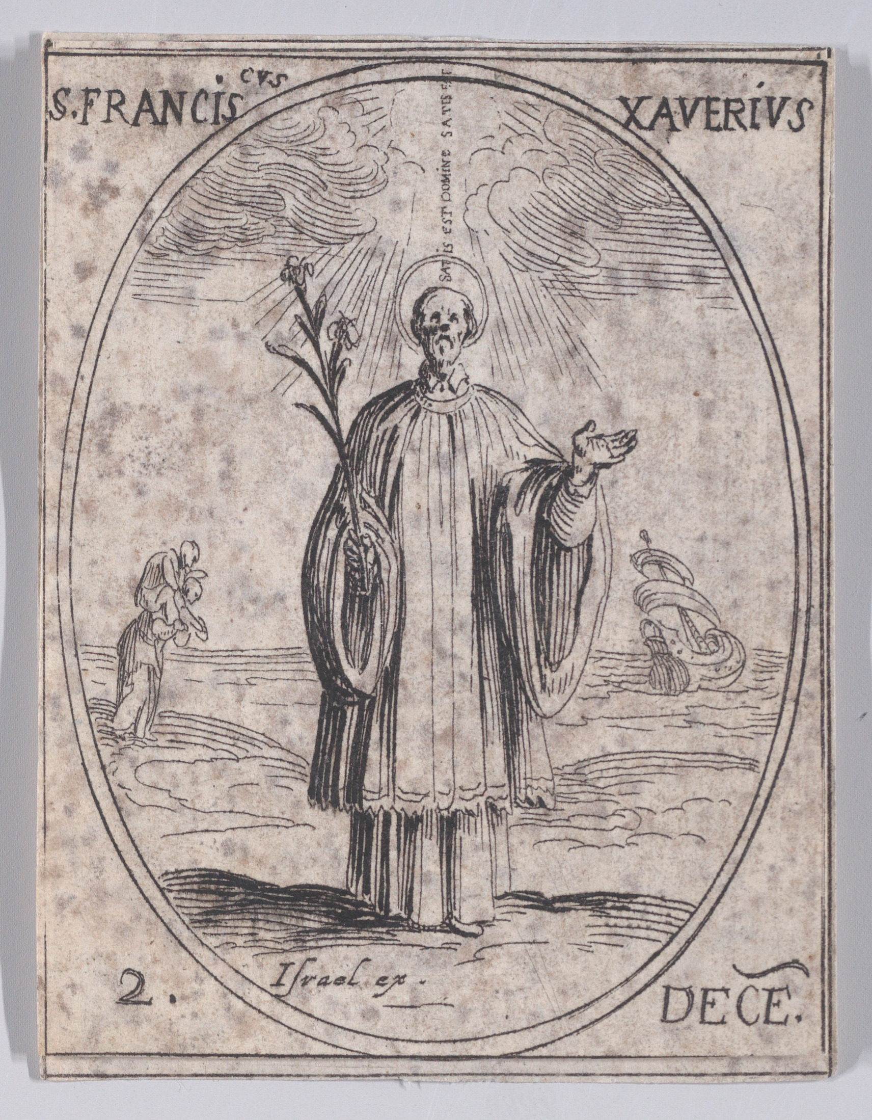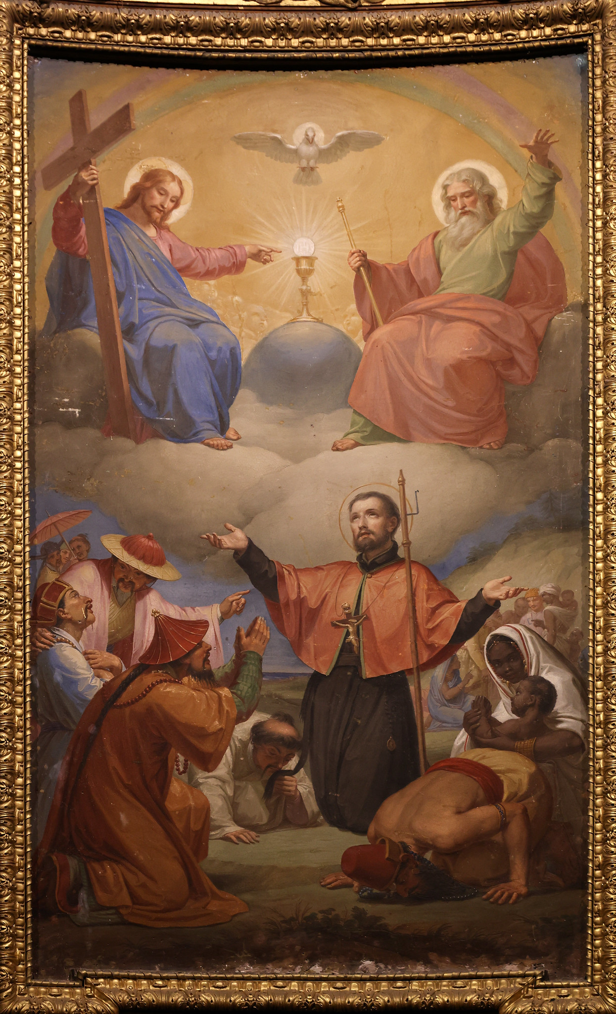 성 프란치스쿠스 하비에르(Franciscus Xavier/Javier, 또는 프란치스코 하비에르)는 1506년 오늘날의 에스파냐 북부 바스크 지방(Basque Provinces)의 팜플로나(Pamplona) 교외에 있는 하비에르 가족성(城)에서 태어났다. 당시 그의 집안은 나바라(Navarra) 왕국의 영향력 있는 귀족 가문이었다. 그러나 1512년 에스파냐의 침공으로 나바라 왕국 대부분이 점령당하면서 아홉 살 때 아버지가 사망하고 가문도 몰락의 길을 걸었다. 계속되는 독립 전쟁 속에서 자란 성 프란치스코 하비에르는 열아홉이 되던 1525년에 몰락한 가문을 살리기 위해 프랑스 파리(Paris)로 갔다. 그는 명문 파리 대학교에서 공부했는데, 1529년에 프랑스 사부아(Savoie) 출신의 성 베드로 파브르(Petrus Faber, 8월 1일)와 같은 방을 쓰게 되었다. 그해 10월 예수회의 설립자인 로욜라(Loyola)의 성 이냐시오(Ignatius, 7월 31일)도 그들과 같은 방을 쓰게 되었다. 같은 지방 출신인 성 이냐시오는 과거 전쟁 중에 그와 반대편인 에스파냐를 위해 싸운 적이 있었다. 나이가 많은 성 이냐시오는 그가 사제가 되기를 바랐지만, 몰락한 가문을 세우기 위해 세속적 출세를 열망하던 성 프란치스코 하비에르를 설득할 수 없었다. 하지만 나중에 성 프란치스코 하비에르도 생각을 바꾸어 예수회의 설립회원 7명 가운데 한 명이 되었다. 그들은 1534년 8월 15일 성모 승천 대축일에 파리(Paris)의 몽마르트르(Montmartre) 언덕에 있는 생 드니(Saint Denis, 오늘날의 Saint Pierre de Montmartre) 성당의 지하 묘소에서 서원했다. 그들은 그곳에서 정결과 청빈 서원을 하고 예루살렘에 가서 선교 활동에 헌신하기로 서원했다. 그는 성 이냐시오와 다른 4명의 회원과 함께 1537년 이탈리아의 베네치아(Venezia)에서 사제품을 받고 그다음 해에 로마(Roma)로 파견되었다. 당장 예루살렘 성지를 순례하기가 불가능해지자 그와 동료들은 선교에 대해 교황에게 순명하는 새로운 수도회를 설립해 교황의 승인을 받기로 했다. 이렇게 해서 1540년 9월 27일 교황 바오로 3세(Paulus III)에 의해 예수회의 탄생이 승인되었다. 예수회가 성좌로부터 공식 승인을 받은 해에 성 프란치스코 하비에르는 시몬 로드리게스(Simon Rodriguez) 신부와 함께 예수회원으로서는 첫 번째 선교사로 임명되어 동인도로 파견되었다. 그런데 그들은 포르투갈의 리스본(Lisbon)에서 발이 묶였다. 포르투갈의 국왕 후안 3세(Juan III)가 로드리게스 신부는 남으라고 명령했기 때문이다. 이 일로 인해 성 프란치스코 하비에르는 8개월을 하릴없이 지내다가 1541년 4월 7일에야 떠날 수 있었는데, 이때는 교황으로부터 인도의 교황대사 자격을 부여받은 뒤였다. 그는 13개월 후에 인도 중서부 고아(Goa)에 도착했고, 5개월 동안은 병자와 죄수들을 찾아보는 일과 어린이의 신앙교육 및 그곳에 있는 포르투갈 사람들의 비도덕성을 바로잡는 일에 착수했다. 그 후 그는 인도의 남단 타밀나두(Tamil Nadu)에 있는 코모린 곶(Cape Comorin)에서 3년을 지내면서 파라바족(Paravas)을 사목하여 수천 명의 개종자를 얻었다. 1545년에 그는 말레이시아의 말라카(Malacca)를 찾아갔고, 1546년부터 1547년까지는 뉴기니(New Guinea)와 인접한 몰루카(Molucca) 제도와 필리핀과 가까운 모로타이(Morotai) 섬을, 1549년부터 1551년에는 일본까지 왕래하며 왕성한 선교 활동을 펼쳤다. 1551년 12월 일본에서 몰루카로 돌아온 그는 2년 전에 도착한 편지 두 통을 받았는데, 그 한 통에는 그가 ‘인도와 그 너머의 나라들의 관구장’으로 임명되었다는 내용이 들어있었다. 그는 일본에 이어 중국까지 들어가 복음을 전할 계획을 세우고, 산타 크루즈호를 타고 안토니우스(Antonius)라는 중국인 청년과 함께 출발해 광둥항(廣東港)이 바라보이는 산첸(上川, 샹추안) 섬에 도착했다. 그곳에서 광둥항으로 들어가는 배를 수소문하던 중 열병에 걸리고 말았다. 결국 성 프란치스코 하비에르는 1552년 12월 3일, 중국 본토까지 불과 14km의 뱃길을 남겨두고 산첸 섬에서 선종했다. 그의 시신은 산첸 섬에 묻혔다가 포르투갈을 거쳐 인도 고아의 봄 예수 성당(Basilica of Bom Jesus)으로 옮겨 은관에 담아 안치하였다. 흔히 그는 사도 성 바오로(Paulus)에 버금가는 위대한 선교사로 불린다. 그는 수많은 위험과 역경을 딛고 상상할 수 없는 거리와 지역을 여행했고, 그가 개종시킨 교우 수만 해도 10만여 명에 이를 것으로 추정하고 있다. 그래서 그는 ‘인도의 사도’ 또는 ‘일본의 사도’로 불린다. 그는 1619년 교황 바오로 5세(Paulus V)에 의해 시복되었고, 바로 이어서 1622년 3월 12일 교황 그레고리오 15세(Gregorius XV)에 의해 자신의 사부이자 동료인 예수회의 창설자 로욜라(Loyola)의 성 이냐시오와 함께 성인품에 올랐다. 그리고 1927년 교황 비오 11세(Pius XI)는 그를 리지외(Lisieux)의 성녀 데레사(Teresia, 10월 1일)와 함께 ‘가톨릭 선교의 수호성인’으로 선포했다. 2001년 개정 발행되어 2004년 일부 수정 및 추가한 “로마 순교록”은 12월 3일 목록에서 나바라 출신으로 성 이냐시오의 첫 동료이자 예수회 신부로서 인도, 몰루카 제도, 일본에서 수많은 사람을 개종시키고 중국을 향하던 중 질병으로 지쳐 선종했다고 그에 대해 기록하였다. 그는 라틴어로 프란치스쿠스 