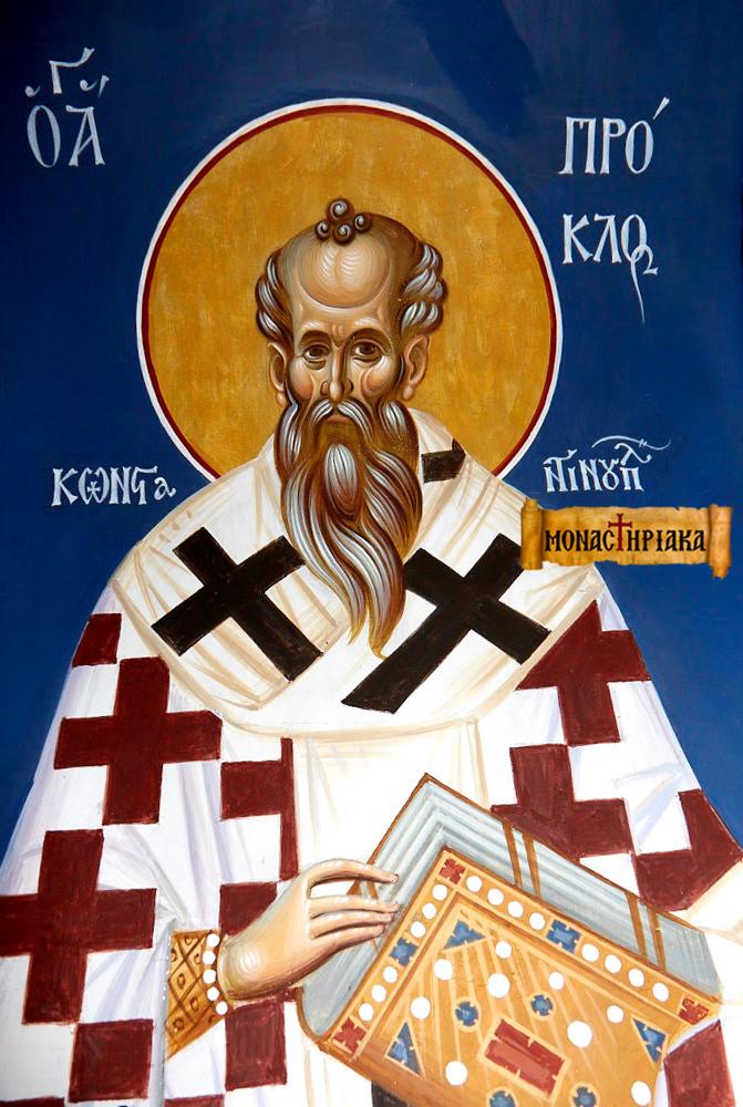 성 프로클루스(또는 프로클로)는 390년경 콘스탄티노플에서 태어나 어린 시절 성 요한 크리소스토모(Joannes Chrisostomus, 9월 13일)의 제자로서 수사학을 배우고 독서직을 받았다고 한다. 그 후 스승인 반대자인 아티쿠스(Patriarch Atticus) 주교에게 부제품과 사제품을 받고 그의 비서가 되었다. 콘스탄티노플의 총대주교였던 아티쿠스가 죽은 뒤 그는 아티쿠스의 후임인 시신니우스(Sisinnius)에 의해 키지쿠스(Cyzicus)의 주교로 임명되었다. 그러나 그 도시의 성직자와 신자들이 이미 수도자인 달마티우스(Dalmatius)를 주교로 선출했기 때문에, 성 프로클로는 반대에 부딪혀 실제로 부임하지는 못하고 콘스탄티노플에 머물며 설교가로서 명성을 얻었다. 427년에 시신니우스 총대주교가 사망한 후 동로마 제국의 테오도시우스 2세 황제(408~450년 재위)와 참사 위원들은 이듬해에 안티오키아(Antiochia)의 사제인 네스토리우스(Nestorius)를 콘스탄티노플의 총대주교로 선출하였다. 출중한 설교가였던 성 프로클로는 네스토리우스 앞에서 성모 마리아를 ‘하느님의 어머니’(Theotokos)로 호칭하며 성모님에 관한 설교를 했는데, 네스토리우스는 마리아를 ‘하느님의 어머니’로 불러서는 안 된다는 설교를 했다. 네스토리우스는 강생(降生)한 그리스도 안에는 신성(神性)과 인성(人性)이라는 두 가지 분리된 인격이 존재한다는 그리스도론적 교리와 동정 마리아는 인간 그리스도의 어머니에 불과하기에 ‘하느님의 어머니’라는 호칭을 사용할 수 없다고 주장해서 교회에 큰 혼란을 불러일으켰다. 성 프로클로는 이를 해결하기 위해 개최된 제3차 보편 공의회인 에페수스 공의회(431년)에 직접 참석하지는 않았지만, 콘스탄티노플에서 ‘하느님의 어머니’ 개념이 허용되도록 하는 데 큰 영향을 끼쳤다. 네스토리우스가 에페수스 공의회에서 이단으로 파문된 후 성 프로클로가 콘스탄티노플의 총대주교로 선출될 뻔했지만, 한 주교가 다른 자리로 옮길 수 없다는 안티오키아 지역 공의회(341년)의 법령에 따라 키지쿠스의 주교로 계속 남았다. 그런데 431년 10월 25일에 수도자 막시미니아누스(Maximinianus)가 콘스탄티노플의 총대주교로 선출되었으나 채 3년도 되지 않은 434년 4월 12일 선종하였다. 게다가 공의회에서 이단으로 단죄받은 네스토리우스의 주장을 따르는 이들이 세력을 모으려 하자 황제는 성 프로클로를 후임 주교로 강력히 추천하였다. 결국 주교들은 성 프로클로를 콘스탄티노플의 총대주교로 뽑았다. 성 프로클로는 네스토리우스파(Nestorianismus)와 여러 이단이 소용돌이치는 혼란스러운 시대에 성 대 바실리오(Basilius, 1월 2일)와 나지안주스(Nazianzus)의 성 그레고리오(Gregorius, 1월 2일)의 교리를 따르도록 권함으로써 정통교리를 지켰다. 또한 하느님이자 인간이신 그리스도의 단일성을 강조한 알렉산드리아(Alexandria)의 성 치릴로(Cyrillus, 6월 27일)의 의견에 동조하였다. 성 치릴로는 성 프로클로에 대해 “신심이 충만하고, 정통교리의 세심한 옹호자”라고 칭찬했다. 성 프로클로는 콘스탄티노플 총대주교의 권위를 카파도키아(Cappadocia) 지방에서 오늘날 알바니아에서 크로아티아 해안지방까지 이어진 로마제국의 속주인 일리리쿰(Illyricum)까지 넓히려고 노력했다. 그리고 438년 1월 27일 유배지인 코마나(Comana, 오늘날 흑해와 가까운 튀르키예 중북부 토카트[Tokat] 지방에 있는 구메네크[Gumenek] 마을의 옛 이름)에서 선종한 스승 성 요한 크리소스토모의 유해를 백성들의 환호 속에 장엄한 행렬을 통해 콘스탄티노플로 이장하였다. 훌륭한 설교가였던 성 프로클로는 446년 7월경에 선종하였다. 로마 가톨릭교회는 10월 24일에 그의 축일을 기념하고, 동방 정교회는 11월 20일에 기념하고 있다. 옛 “로마 순교록”은 10월 24일 목록에서 콘스탄티노플의 주교인 성 프로클로의 이름만 간단히 전해주었다. 2001년 개정 발행되어 2004년 일부 수정 및 추가한 “로마 순교록”은 같은 날 목록에서 콘스탄티노플에서 복되신 마리아를 ‘하느님의 어머니’로 용감하게 선포하고 성 요한 크리소스토모의 유해를 엄숙한 행렬을 통해 유배지에서 콘스탄티노플로 모셔온 성 프로클로는 칼케돈(Chalcedon) 세계 공의회에서 이름 앞에 ‘위대한’(Magnus, the Great)이란 칭호를 받을 자격이 충분했다고 기록하였다.♣