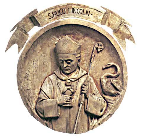 성 후고(Hugo)는 프랑스 동부 부르고뉴(Bourgogne)의 아발론 성에서 성주인 빌리암(William)의 아들로 태어났다. 그는 8세 때에 어머니 안나(Anna)를 잃고 빌라드-브느와(Villard-Benoit) 수도원에서 교육을 받고 성장했다. 그는 19세 때에 부제품을 받고 성 막심(Maxim) 수도원의 원장이 되었다. 1160년에 그는 그랑드 샤르트뢰즈(Grand Chartreuse) 수도원을 방문한 뒤에 카르투지오회 회원이 될 결심을 하고, 그곳에서 사제품을 받았다. 10년 후에 그는 카르투지오회의 재정담당이 되었고, 1175년에는 잉글랜드(England) 카르투지오회 수도원의 원장이 되었다. 그의 성덕과 학덕에 대한 명성은 전 영국에 퍼졌고, 그의 영향력 또한 점점 커졌다. 이 때문에 그는 거의 18년 동안이나 공석이던 영국 잉글랜드 중동부 링컨 교구를 맡아 교구의 신앙을 일신했는데, 이때 보여 준 그의 지혜와 정의는 너무나도 유명하다. 그는 잉글랜드에 사는 유대인 박해정책을 반대하던 지도자 중의 한 사람이었다. 그는 1200년 11월 17일 런던(London)에서 선종했고, 1220년 교황 호노리우스 3세(Honorius III)에 의해 시성되었다. 교회미술에서 그의 상징은 백조이다. 성 후고는 야생 백조 한 마리를 애완용으로 길렀는데, 그 백조가 늘 그를 따르고 임종까지 지켜봤다고 한다. 그리고 한 손에 성작을 들고 있고, 그 성작 위에 아기 예수님이 앉아 있는 모습으로도 표현된다. 이는 성 후고가 벅든(Buckden)에서 미사를 집전하던 중 일어난 기적과 관련된 것으로, 성변화 중에 일어난 그리스도의 환시를 표현한 것이다. 그 외에 링컨 주교좌성당을 들고 있는 모습으로 표현하기도 한다.