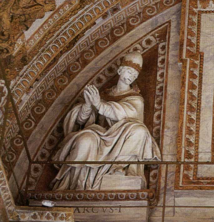 이탈리아 로마(Roma) 출신으로 프리스쿠스(Priscus)의 아들로 전해지는 성 마르코(Marcus)는 로마 교회의 성직자로서 봉사하던 중 교황으로 선출되었는데, 콘스탄티누스 대제의 신앙 자유 이후 처음으로 뽑힌 교황이다. 그는 새로운 방향으로 교회를 지도하기보다는 교회의 평화를 위해 진력하였다. 왜냐하면 박해는 이제 종식되었지만 또 다른 사탄(이단)이 침입할 기회를 엿보고 있었기 때문이다. 그러나 그는 재임 8개월 20일 만에 선종하였다. 교황 성 다마수스(Damasus, 12월 11일)가 기술한 성 마르코에 대한 시의 단편이 남아 있는데, 여기에 그의 기도 정신이 언급되어 있다.