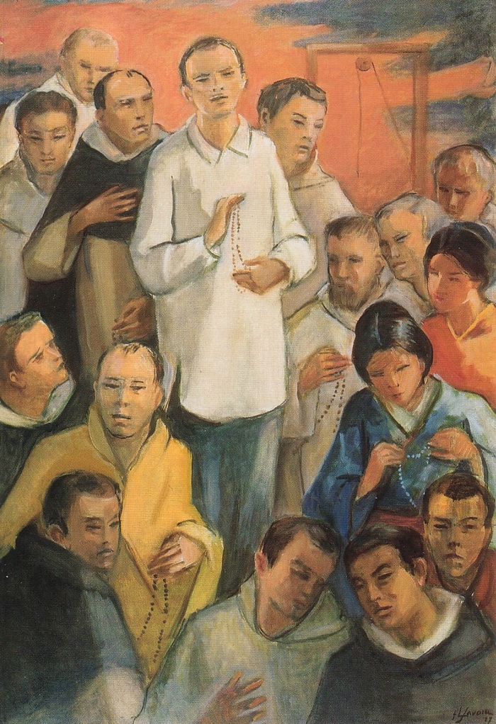 ‘성 라우렌시오 루이스(Laurentius Ruiz)와 성 도미니코 이바녜스 데 에르키시아(Dominicus Ibanez de Erquicia)와 성모 마리아의 성 야고보 큐세이 토모나가(Jacobus Kyushei Tomonaga de Santa Maria)와 13명의 동료 순교자들’은 일본 나가사키(長崎) 지방에 교회를 설립하기 위해 노력하다가 당국에 의해 체포되어 1633년, 1634년, 1637년에 모두 순교하였다. 그들은 체포된 이후 잔혹한 고문을 당했고, 그 시신마저도 불태워진 후 다른 그리스도인들이 순교자의 유해를 공경하지 못하도록 나가사키 바다에 뿌려졌다. 이들 16명의 순교자를 출신 국가별로 보면 일본인 9명, 에스파냐인 4명, 프랑스인 1명, 이탈리아인 1명, 필리핀인 1명이다. 신분으로 보면 9명은 도미니코회 사제, 2명은 협력자(수련자) 형제, 2명은 제3회원, 그리고 3명은 평신도였다. 도미니코회 3회원이었던 오무라(Omura)의 성녀 마리나(Marina)와 성 안토니오 곤살레스(Antonius Gonzalez) 신부를 제외한 모든 순교자는 나가사키 해안 근처에 있는 니시자카(西坂, Nishizaka) 언덕에서 순교하였다. 이곳은 1697년에 일본 최초의 순교자들인 성 바오로 미키(Paulus MIki, 2월 6일)와 동료 순교자 25위가 십자가에 못 박혀 순교했던 곳이며, 또한 1617년에서 1632년 사이에 순교한 205위의 복자 중 다수가 순교했던 곳이었다. 에스파냐 출신의 도미니코회 사제인 성 도미니코 이바녜스 데 에르키시아가 1633년 8월 14일 처음 순교한 이후 필리핀 마닐라(Manila) 출신 평신도인 성 라우렌시오 루이스가 1637년 9월 29일 순교할 때까지 이들의 순교는 계속되었다. 총 16명의 순교자 중 13명이 도미니코회 사제이거나 수련자 또는 3회원이고 나머지 3명도 그들과 연관되어 있었다. 이들 순교자 대부분은 자기 나라에서 필리핀을 거쳐 일본으로 들어왔다. 성 루카 알론소 고르다(Lucas Alonso Gorda)는 1594년 에스파냐 서부 사모라(Zamora)와 아스토르가(Astorga) 사이에 있는 카라세도(Carracedo)에서 성 루카(Lucas, 10월 18일) 복음사가 축일에 태어나 성령의 성 루카(San Lucas del Espiritu Santo)로도 불린다. 그는 도미니코회에 입회한 후 멕시코로 가서 멕시코시티(Mexico City)에서 사제품을 받았다. 그리고 동양 선교를 위해 1617년에 도미니코회의 묵주기도의 성모 마리아 선교 관구가 있는 필리핀의 마닐라로 갔다. 그는 산토 토마스(Santo Tomas) 대학교에서 교수로 활동하고, 루손섬(Luzon Is.) 북부의 카가얀(Cagayan)에서 선교활동을 했다. 그 후 성 루카 알론소 고르다 신부는 혹독한 박해로 인해 고통받는 일본 교회를 돕기 위해 1623년 일본으로 들어갔다. 나가사키 근처에서 일본어를 배우고 10년 동안 잔혹한 박해로 인한 엄청난 위험과 고난을 겪으며 선교활동을 이어갔다. 계속해서 동료 사제들이 순교하는 가운데 그는 두 차례에 걸쳐 혼슈(本州)를 종단하는 선교여행을 하며 신자들을 격려하고 성사를 집전하였다. 그러던 중 1633년에 오사카(大阪, Osaka)에서 체포되어 고문을 당한 후 나가사키로 호송되었다. 나가사키에서 그는 배교하라는 유혹을 끝까지 물리치고 신앙을 고백하여 당시 가장 끔찍한 고문인 ‘아나츠루시’(Ana-tsurushi)를 받았다. 이는 죄인을 밧줄로 묶어 거꾸로 매달고 관자놀이에 작은 구멍을 내 머리로 쏠린 피를 조금씩 빼내며 더러운 오물로 가득한 구덩이에 몸통을 집어넣는 잔혹한 고문이었다. 결국 그는 1633년 10월 19일 39살의 나이로 순교하였다. 그의 시신은 불태워진 후 재마저 바다에 버려졌다. 같은 날 그와 함께 순교한 이로는 로사리오의 성 마태우스 코히오예(Matthaeus Kohioye, 또는 마태오 코히오예)가 있다. 그의 생애에 대한 성 루카 알론소 고르다의 기록에 따르면, 그는 1615년 나가사키의 시마바라(島原, Shimabara) 근처 아리마(Arima)에서 태어났다. 1632년에 성 루카 알론소 고르다 신부를 도와 교리교사로 활동했고, 그 뒤에 도미니코회에 입회하여 수도자가 되었다. 그렇게 성 루카 알론소 고르다 신부를 도우며 그와 함께 머물면서 수련하던 중 1633년 오사카에서 함께 체포되어 나가사키로 호송되었다. 그는 배교를 권유받았으나 끝까지 흔들리지 않았고, 끔찍한 고문을 받으면서도 그리스도를 위해 기꺼이 목숨을 바치겠다는 굳은 의지를 드러냈다. 결국 18살의 젊은 수련자였던 성 마태오 코히오예는 성 루카 알론소 고르다 신부와 함께 10월 19일 아나츠루시 형을 받고 순교의 월계관을 받았다. ‘성 라우렌시오 루이스와 성 도미니코 이바녜스 데 에르키시아와 성모 마리아의 성 야고보 큐세이 토모나가와 13명의 동료 순교자들’은 1981년 2월 18일 교황 성 요한 바오로 2세(Joannes Paulus II, 10월 22일)에 의해 순교자 대부분과 인연이 있는 도시인 필리핀의 마닐라에서 복자품에 올랐다. 이는 역사상 처음으로 로마 밖에서 거행된 시복식이었다. 그리고 그들 모두 1987년 10월 18일 바티칸의 성 베드로 광장에서 같은 교황에 의해 시성되었다. 2001년 개정 발행되어 2004년 일부 수정 및 추가한 “로마 순교록”은 10월 19일 목록에서 일본 나가사키에서 도미니코회의 신부인 성 루카 알폰소 고르다와 수련자인 성 마태오 코히오예가 순교했다고 했다. 그리고 성 루카 알폰소 고르다가 필리핀에서 먼저 복음을 전파한 후 10년 동안 일본