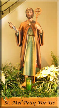 불확실한 전설이긴 하지만 성 멜과 그의 동생인 성 멜추(Melchu)는 성 파트리키우스(Patricius, 3월 17일)의 여동생인 어머니 성녀 다레르카(Darerca, 3월 22일)와 아버지 코니스(Conis) 사이에서 태어났다. 그들은 성 파트리키우스를 수행하여 아일랜드로 가서 성인의 선교활동에 적극 가담하였으며 주교가 되었다. 성 파트리키우스가 성 멜을 아다의 주교로, 성 멜추는 아마(Armagh)의 주교로 임명했다는 것이다. 그러나 성 멜에게서 몇 가지 스캔들이 일어나 교구를 떠나야 할 입장에 놓였을 때, 성 파트리키우스의 기적으로 인해 그의 결백이 밝혀졌다고 한다. 그 후 성인은 성 멜과 성 멜추 형제가 자신을 떠나 순회선교 주교로서 살도록 했다고 한다. 그러나 다양한 전승들이 섞여 있어 그들에 대해 확실한 것은 없다. 성 멜이 아마의 주교이거나 또는 성 멜과 성 멜추가 같은 사람일 수도 있다.