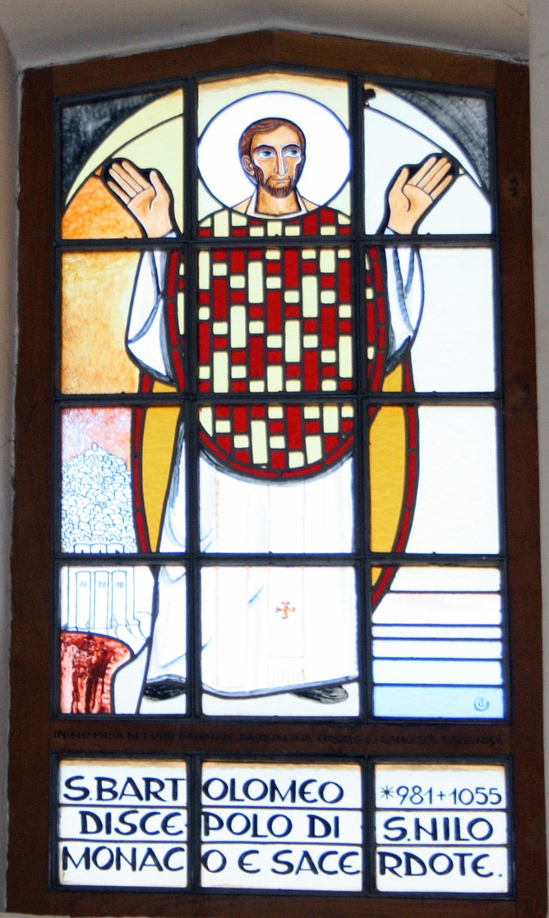 성 바르톨로메우스(Bartholomaeus, 또는 바르톨로메오)는 이탈리아 남부 칼라브리아(Calabria) 지방 코센차(Cosenza)의 로사노(Rossano)에서 980년경에 태어났다. 그는 그리스계 혈통으로 본래 콘스탄티노플(Constantinople)의 귀족 가문의 후손이다. 당시 칼라브리아 지방은 이슬람을 피해 그리스에서 넘어온 성 대 바실리오(Basilius Magnus, 1월 2일)의 수도 규칙을 따르는 많은 그리스계 수도승들이 살고 있었다. 그는 바실리오라는 이름으로 세례를 받고 7살부터 그리스 전례를 따르는 산 조반니 칼리비타 디 칼로베토(San Giovanni Calibita di Caloveto) 수도원에 맡겨져 수도승들로부터 교육을 받았다. 그리고 12살 때 같은 마을 출신인 로사노의 성 닐로(Nilus the Younger, 9월 26일)가 몬테카시노(Monte Cassino) 근처 발레루체(Valleluce)에 설립한 산탄젤로(Sant’Angelo) 수도원에 들어갔다. 그는 성 닐로 수도원장이 다른 수도원을 방문할 때 함께 수행했는데, 994년에는 성 닐로를 수행해 가에타(Gaeta)의 세르페리(Serperi) 수도원에 간 후 그곳에서 10년 동안 지내며 철저히 금식과 금욕의 생활을 실천했다. 1004년에 성 바르톨로메오는 성 닐로 수도원장이 로마 외곽 투스쿨룸(Tusculum) 남쪽의 수도원을 방문할 때 그를 수행하였다. 성 닐로가 병을 얻어 앓고 있을 때 성모 마리아가 환시 중에 나타나 이곳이 그의 공동체가 영구히 정착할 곳임을 알려주었다고 한다. 성 닐로는 훗날 교황 베네딕토 8세(Benedictus VIII)가 될 백작으로부터 오래된 건물을 선물 받아 그곳에 성 바실리오의 수도 규칙을 따르는 새로운 수도원을 세웠는데, 이것이 바로 오늘날 그로타페라타(Grottaferrata)의 산타 마리아(Santa Maria) 수도원의 시작이었다. 성 닐로는 수도원 건축이 시작되는 것을 보지 못하고 세상을 떠나 그로타페라타에 묻혔다. 하지만 그로타페라타 수도원은 성 닐로를 설립자이자 초대 수도원장으로 공경하고 있다. 성 닐로의 수제자이자 그로타페라타 수도원의 세 번째 수도원장이 된 성 바르톨로메오가 수도원 건축을 진행해 1024년에 교황 요한 19세(Joannes XIX)가 축복식을 거행하였다. 그래서 성 바르톨로메오는 그로타페라타 수도원의 두 번째 설립자로서 공경을 받고 있다. 이 수도원은 거의 천 년 동안 이탈리아 내에서 비잔틴 전례를 실천하는 수도원으로서 거룩한 생활과 학문의 전당으로 자리를 잡았다. 특히 필사본 제작에 힘썼던 이 수도원은 오늘날에도 많은 사본들을 과학적으로 보존하고 있다. 성 바르톨로메오는 유능한 수도원장으로서 1044년에 라테라노 공의회에 참석하여 외교적 재능을 보여주기도 했다. 그는 또한 노련한 필경사였고, 스승인 성 닐로처럼 많은 찬미가를 지어 11세기의 가장 위대한 찬미가 작가로도 여겨진다. 그는 성모 마리아와 다른 성인들과 성 닐로의 삶에 대한 찬미가를 썼고, “성 닐로의 전기”를 작성하였다. 그리고 수도원의 전례와 규칙을 다룬 “티피콘”(Typicon) 또한 그의 위대한 작품으로 전해지고 있다. 성 바르톨로메오는 교황 베네딕토 8세와 교황 베네딕토 9세의 절친한 친구였으며, 여러 추문으로 교황직에서 물러난 교황 베네딕토 9세를 그로타페라타 수도원에 받아들였다. 그는 1065년에 선종하여 수도원 성당의 성 닐로 옆에 묻혔다. 옛 “로마 순교록”은 11월 11일 목록에서 프라스카티(Frascati) 근처의 크립타페라타(Crypta-Ferrata, 또는 그로타페라타) 수도원에 성 닐로의 동료이자 수도원장인 성 바르톨로메오가 있었고, 그가 성 닐로의 전기를 썼다고 전해주었다. 2001년 개정 발행되어 2004년 일부 수정 및 추가한 “로마 순교록”은 같은 날 목록에서 로마 근처 프라스카티 근처 그로타페라타 수도원에 칼라브리아에서 태어난 성 바르톨로메오 수도원장이 있었는데, 그는 성 닐로의 동료였으며 나중에 그의 전기를 썼다고 적었다. 그리고 죽음이 다가오자 동방 교부들의 금욕주의적 규칙을 따르는 수도원을 프라스카티 지역에 세웠고, 수도원장으로서 재임하는 동안 수도원을 문학과 예술의 중심지로 만들었다고 기록하였다.♣