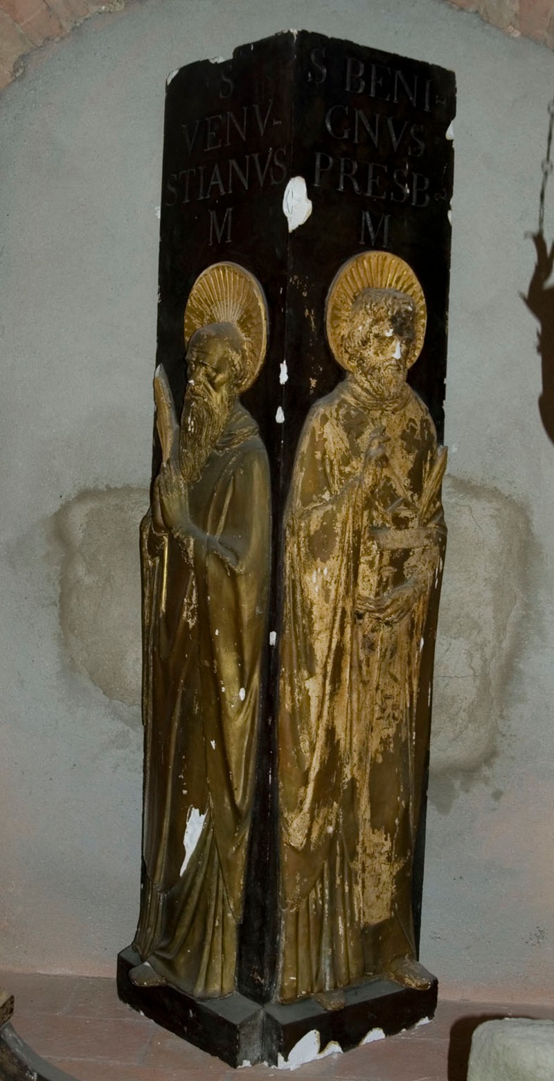 성 사비노(Sabinus)는 이탈리아 스폴레토 지방 아시시(Assisi)의 주교로 교외 안팎에서 큰 존경을 받던 인물이다. 디오클레티아누스 황제(284~305년 재위)의 그리스도교 박해가 시작하자 에트루리아(Etruria)와 움브리아(Umbria)의 총독인 성 베누스티아누스(또는 베누스티아노)는 아시시에서 성 사비노 주교와 그의 부제인 성 마르첼로(Marcellus)와 성 엑스수페란시오(Exsuperantius)를 체포했다. 당시 황제의 명령으로 모든 그리스도인은 로마의 신상 앞에 희생 제사를 바치도록 강요당했고, 그렇지 않으면 결과는 죽음뿐이었다. 총독은 죽은 자를 숭배한다며 성 사비노의 신앙을 조롱하고 작은 유피테르(Jupiter) 신상을 건네주었다. 성 사비노는 신상을 받자마자 그가 보는 앞에서 땅에 내동댕이쳐서 깨뜨려 버렸다. 이 사건으로 큰 모욕을 받은 성 베누스티아노 총독은 성 사비노 주교의 두 손을 잘라버린 후 감옥에 가두었다. 이때 그의 부제이던 성 마르첼로와 성 엑스수페란시오도 굳은 신앙을 고백하고 모진 고문을 받았다. 그들은 고문대에 묶여 심한 매를 맞고, 쇠 갈고리로 온몸이 찢기고, 뜨거운 불로 지지는 고통을 받은 후 순교하여 아시시에 묻혔다. 감옥에 갇힌 성 사비노는 세레나(Serena)라는 경건한 과부의 도움을 받았는데, 어느 날 그녀가 태어나면서부터 앞을 보지 못하는 아들을 데려와 축복을 간청했다. 이때 성 사비노 주교의 기도와 축복으로 아이의 눈이 치유되는 기적이 일어났다. 평소 눈병을 앓고 있던 성 베누스티아노 총독은 이 말을 듣고 주교의 도움으로 자신의 눈이 치유되자 온 가족과 함께 그리스도교로 개종했다. 성 사비노는 잘린 손으로 그들에게 세례를 베풀었다. 황제는 이 사실을 알고 호민관을 보내어 성 베누스티아노 총독과 그의 아내와 두 아들을 아시시에서 참수형에 처했다. 그리고 성 사비노는 재판을 위해 스폴레토로 데려갔다. 성 사비노는 그곳에서 죽을 때까지 채찍질을 맞고 순교의 월계관을 썼다. 감옥에서 그를 돌봐주었던 세레나가 그의 시신을 도시 외곽에 묻어주었다. 성 사비노 주교는 그 후 이탈리아 중부 지역에서 가장 큰 공경을 받는 성인 중 한 명이 되었다. 5세기에 그의 무덤으로 추정되는 스폴레토 외곽에 성당이 세워졌고, 곧이어 중요한 순례지가 되었다. 그는 이탈리아 중부의 주요 도시인 스폴레토, 아시시, 시에나(Siena), 페르모(Fermo) 등의 수호성인이 되었다. 시에나에서 성 사비노 주교는 그 도시의 네 명의 수호성인 중 한 명으로 큰 공경을 받았다. 시에나 출신 화가인 두초 디 부오닌세냐(Duccio di Buoninsegna)는 14세기 초에 시에나 주교좌성당에 설치할 마에스타(Maesta)를 제작했다. 성모자를 중심으로 좌우에 수많은 성인이 자리하고 있고, 그중에서 시에나의 네 명의 수호성인이 가장 앞줄에 무릎 꿇은 자세로 성모자를 경배하는 모습으로 표현하였다. 왼쪽부터 성 안사노(Ansanus, 12월 1일) 순교자, 성 사비노 주교 순교자, 성 크레센시오(Crescentius, 9월 14일) 순교자, 성 빅토르(Victor, 5월 14일) 순교자 순으로 그렸다. 옛 “로마 순교록”은 12월 30일 목록에서 성 사비노 주교와 그의 두 부제인 성 마르첼로와 성 엑스수페란시오 그리고 총독인 성 베누스티아노와 그의 가족이 신앙을 증거하고 모진 고문을 당한 후 순교했음을 전해주었다. 그리고 그들의 순교 시기는 다르지만 모두 같은 날에 스폴레토에서 기념한다고 기록하였다. 그런데 2001년 개정 발행되어 2004년 일부 수정 및 추가한 “로마 순교록”은 이탈리아 움브리아 지방 스폴레토에서 성 사비노 주교 순교자를 공경한다고 기록하면서 전례적 기념일을 순교한 날로 알려진 12월 7일로 옮겼다. 그리고 성 사비노 외에 다른 동료 순교자들에 대해서 더는 별도로 언급하지 않았다. 스폴레토의 성 사비노는 아시시의 성 사비노로도 불린다.♣