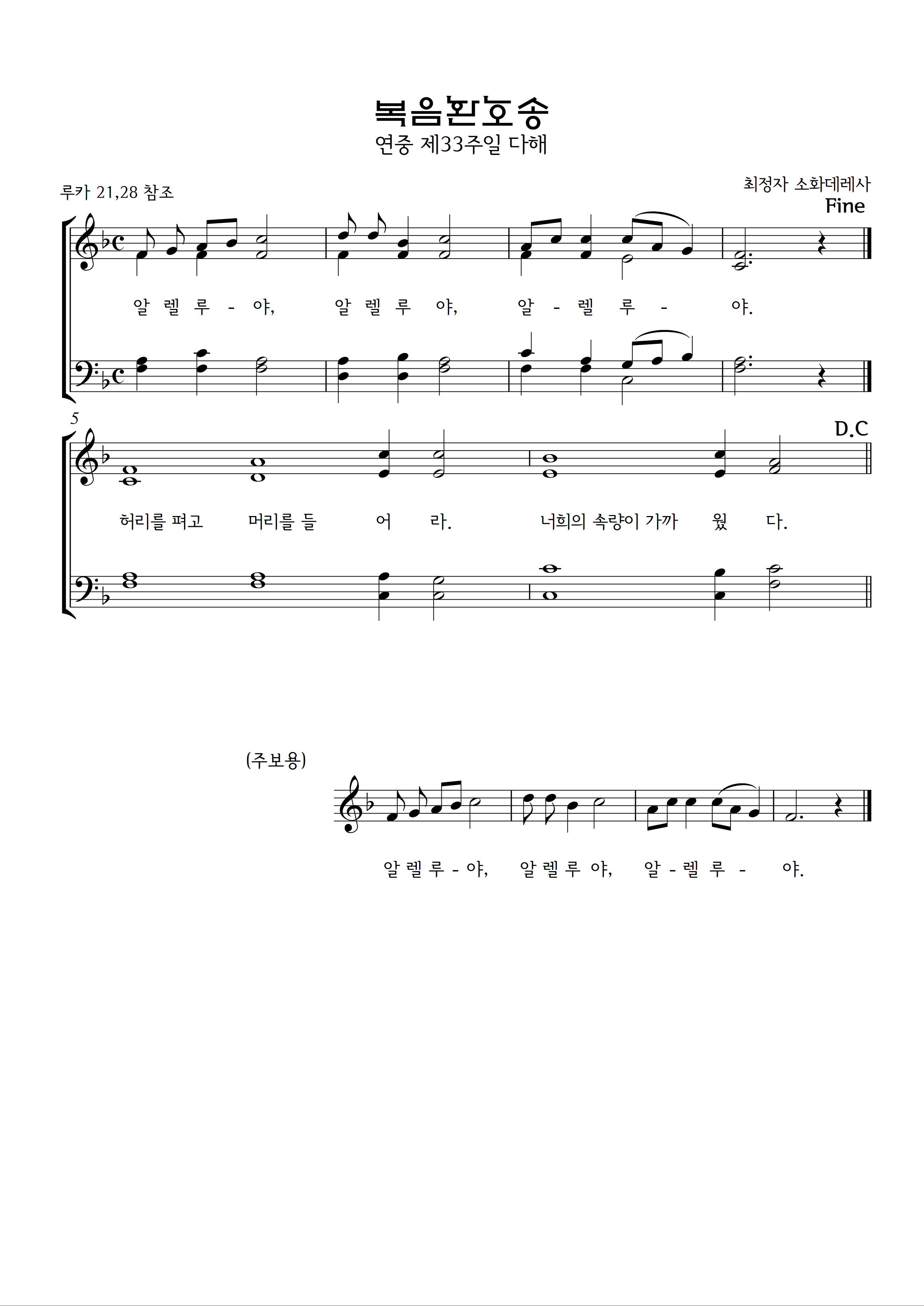 제목 연중 제33주일 다해 화답송-복음환호송/최정자