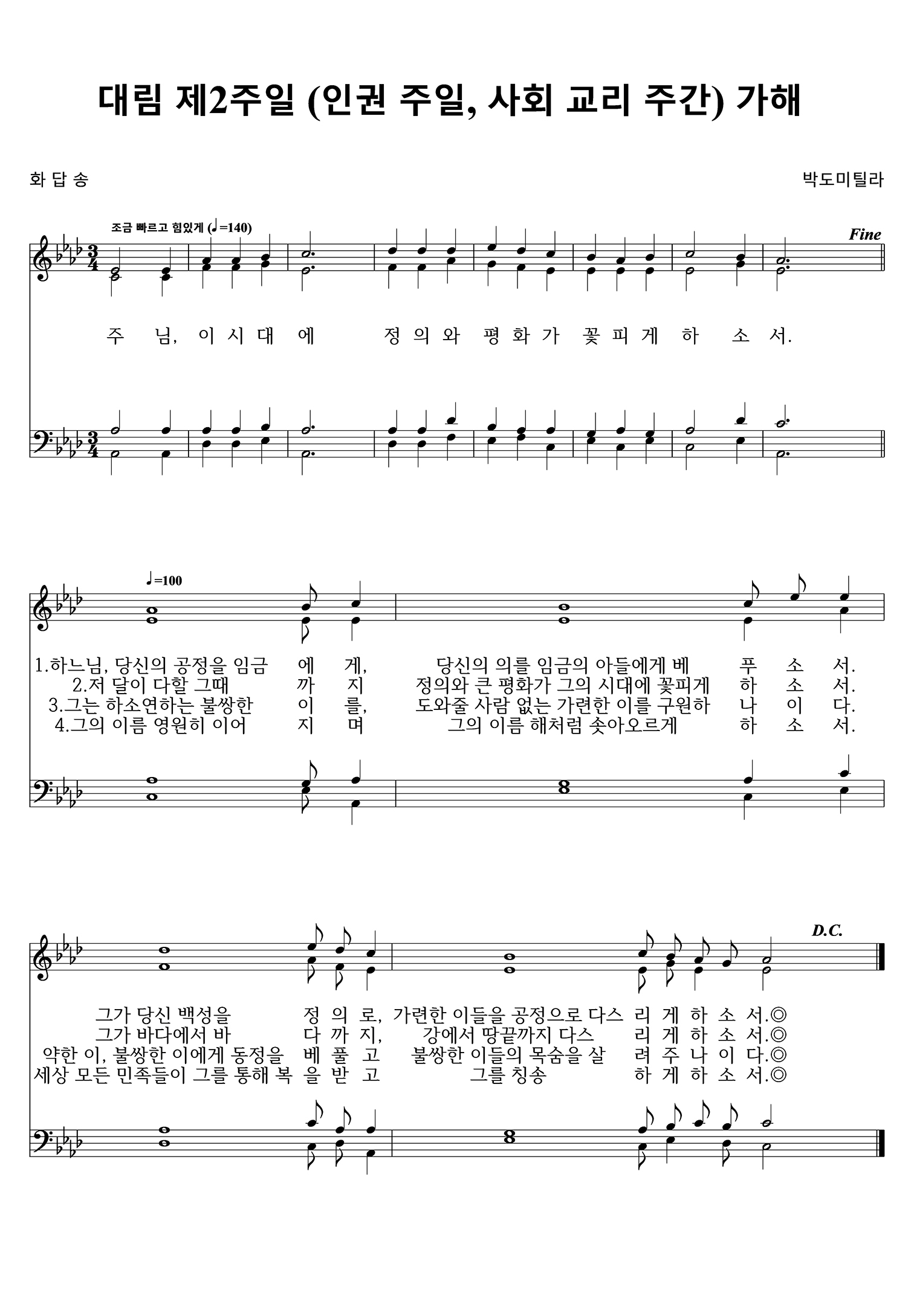 | 제목 | 대림 제2주일(인권주일, 사회교리주간) 가해 화답송 - 박도미틸라 | |||