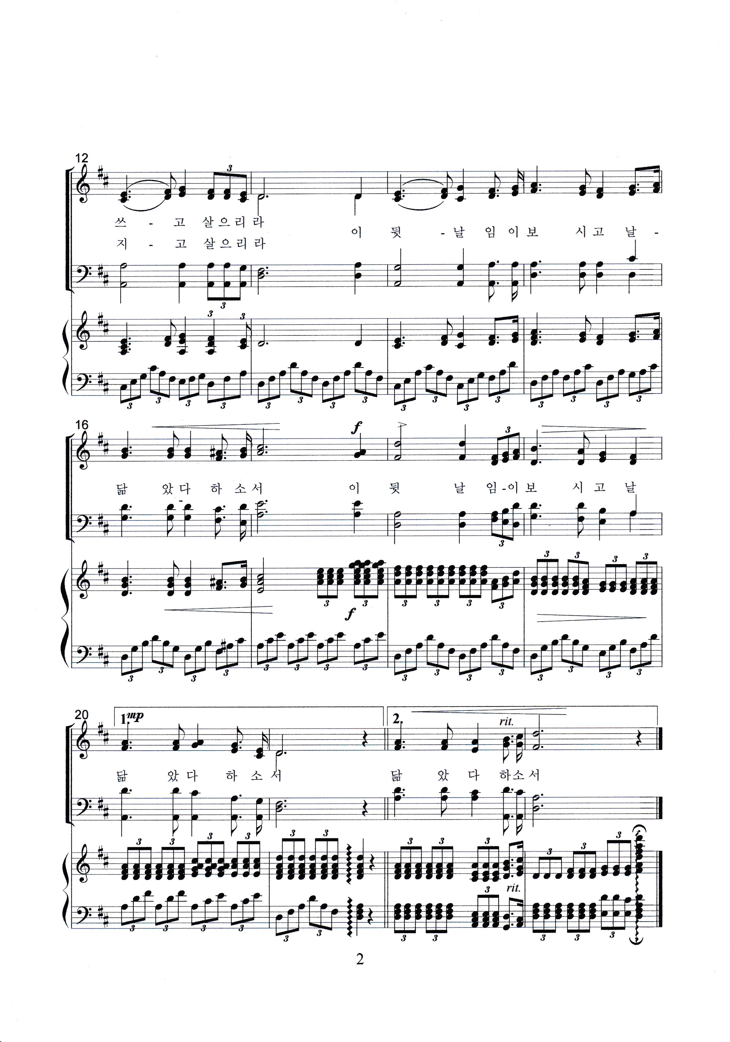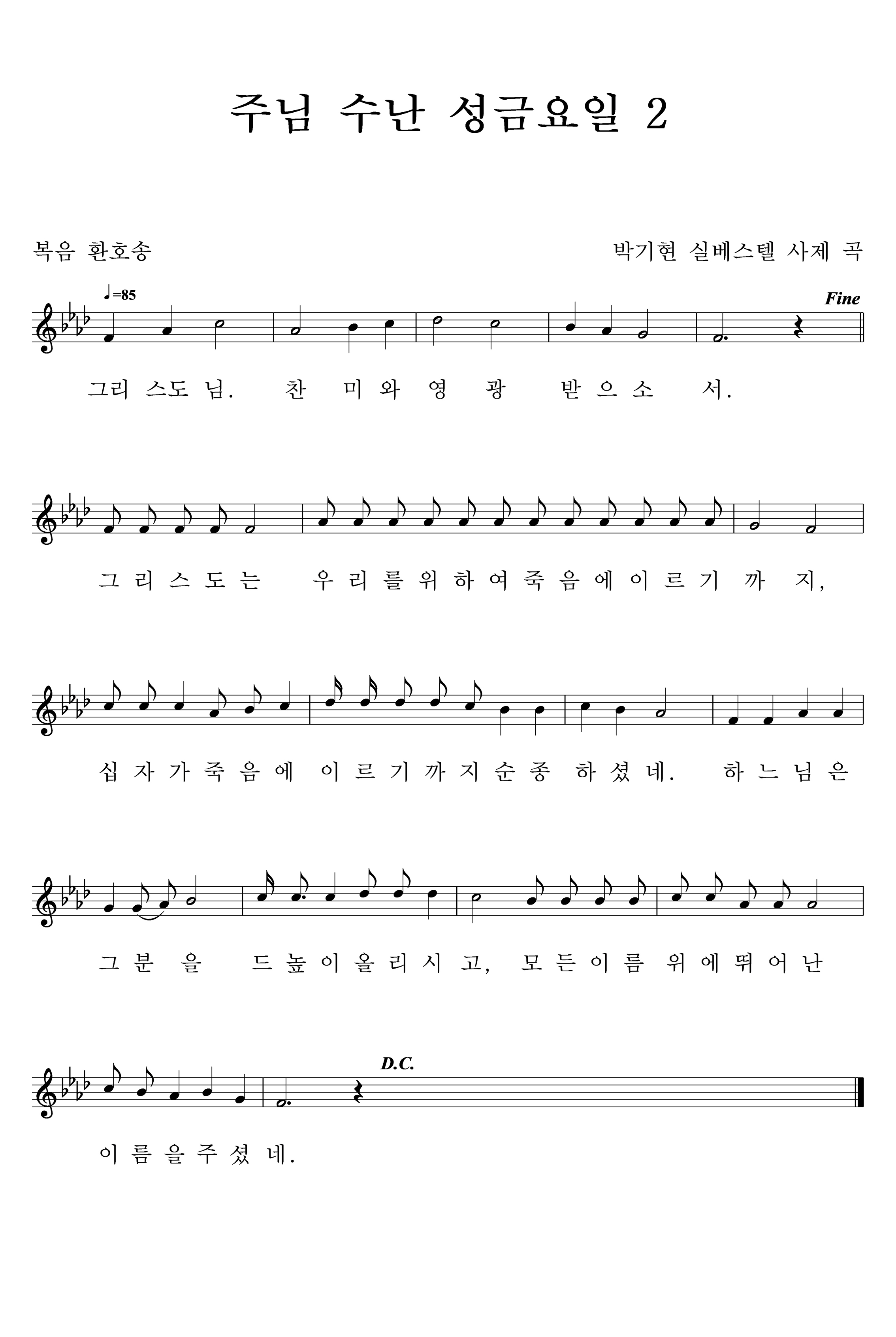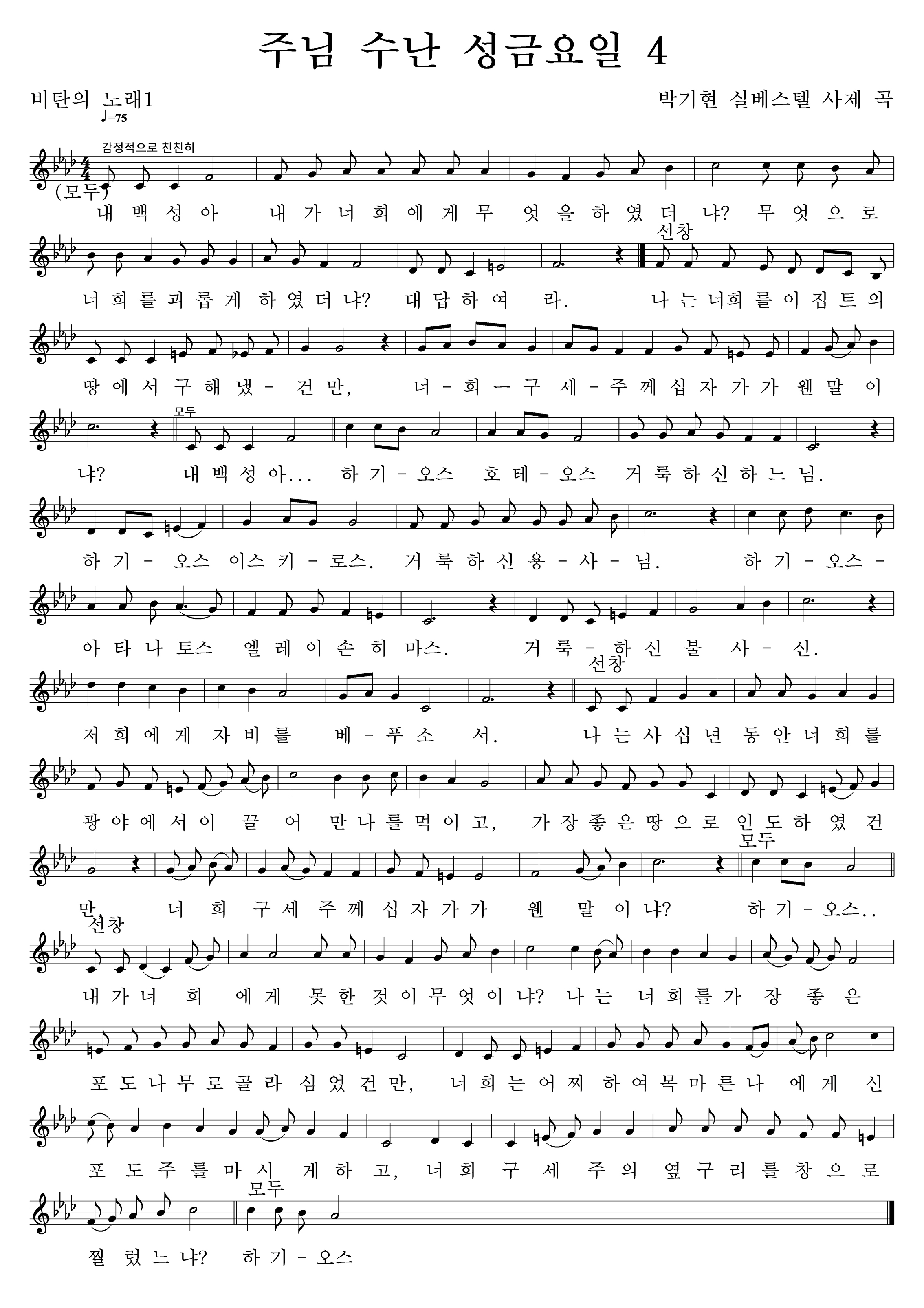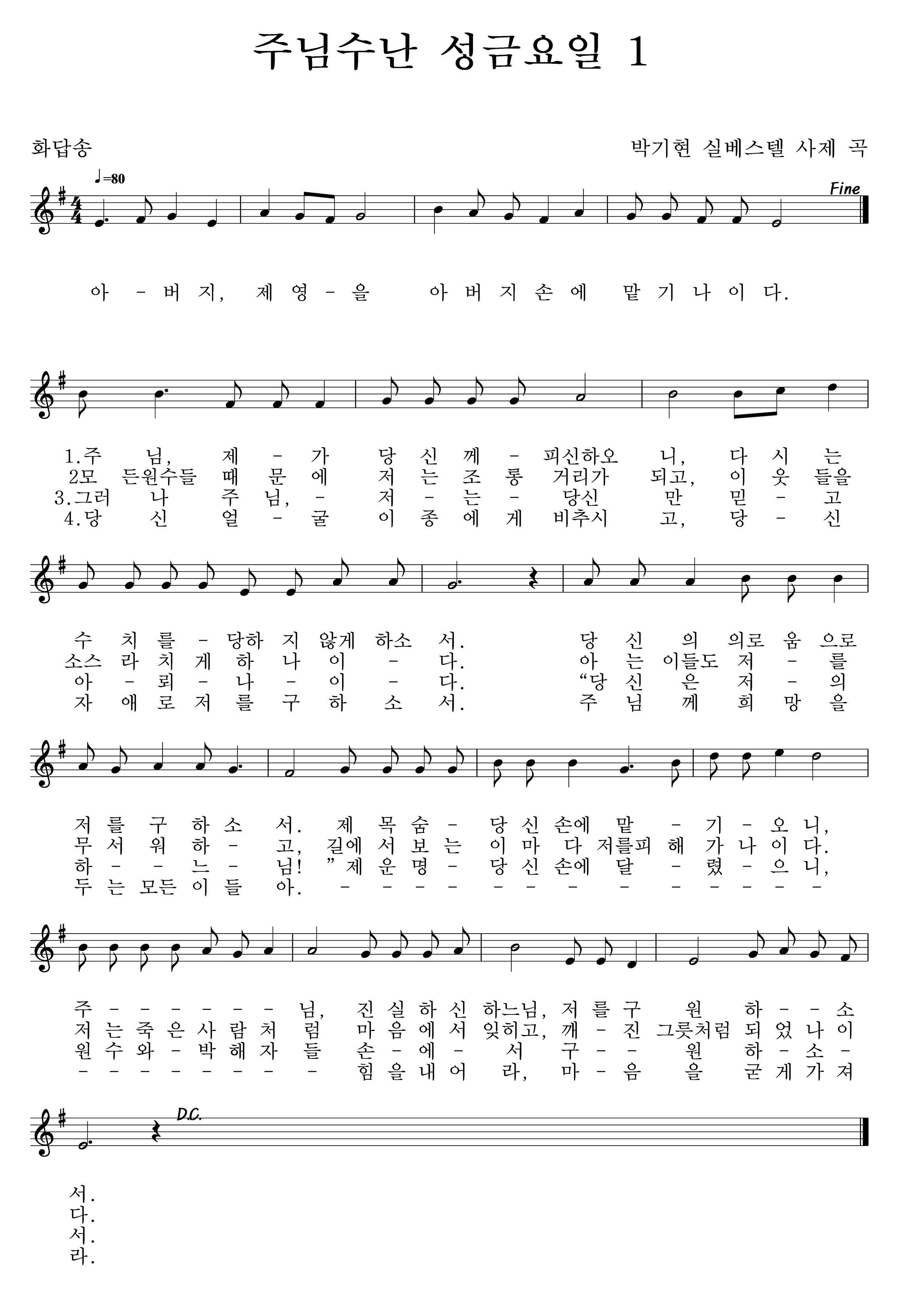 | 파일첨부 1.화답송.nwc [27] 2.복음 환호송.nwc [24] 3.십자가 경배 권고.nwc [24] 4.비탄의 노래1.nwc [30] 5.찬미가.nwc [25] 임의 생애.nwc [26] 임의생애(원본).jpg [25] 임의생애(합창)1.jpg [30] 임의생애(합창)2.jpg [29] | ||||