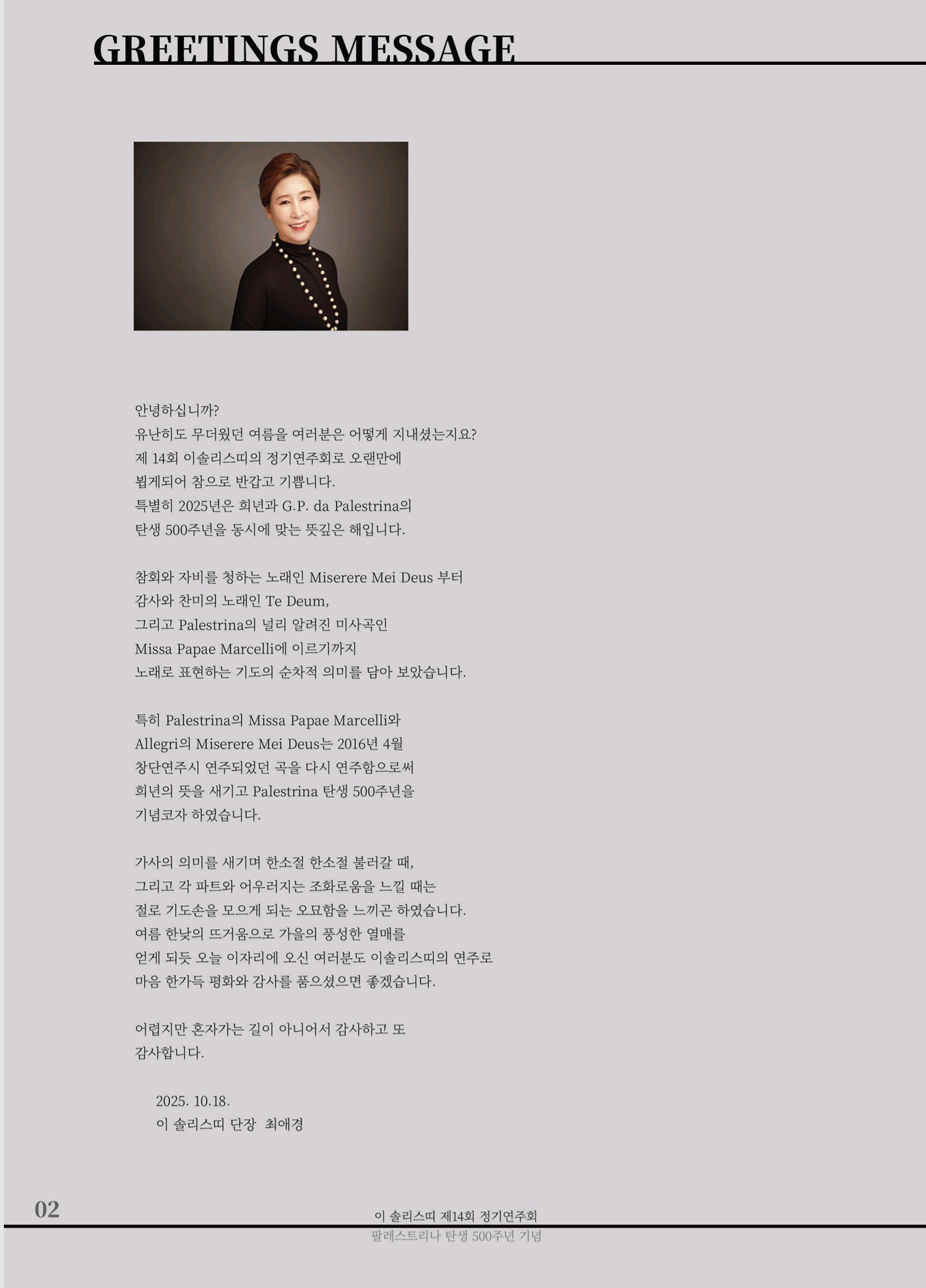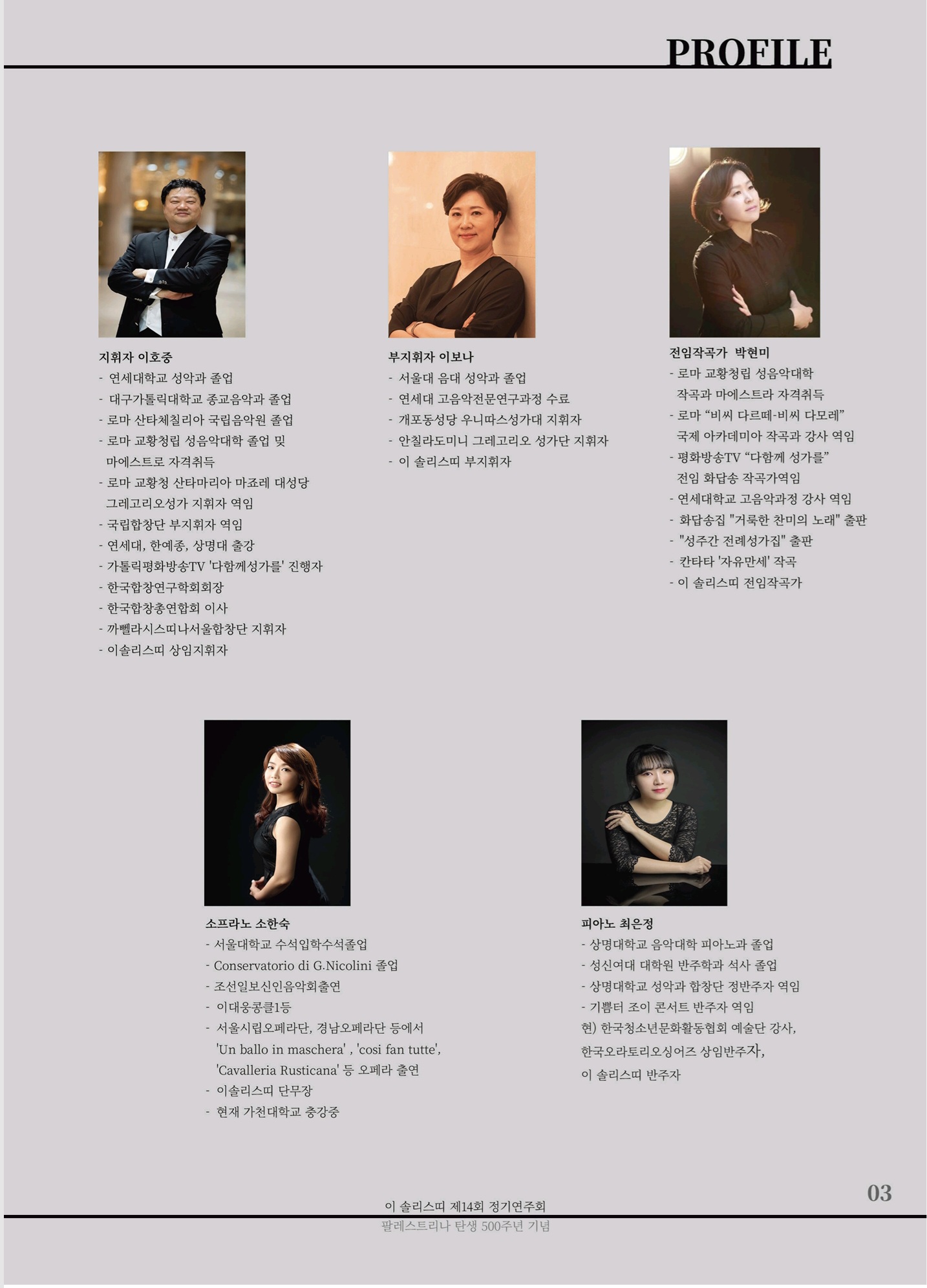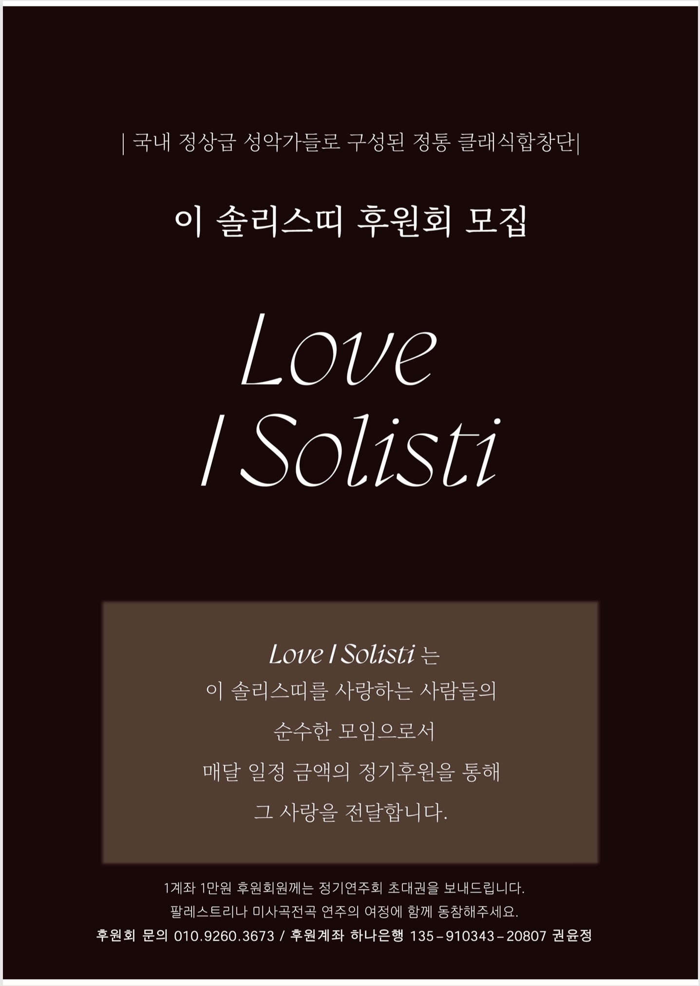 다가오는 18일 광림아트센터 장천홀에서 이 솔리스띠 제14회 정기연주회
