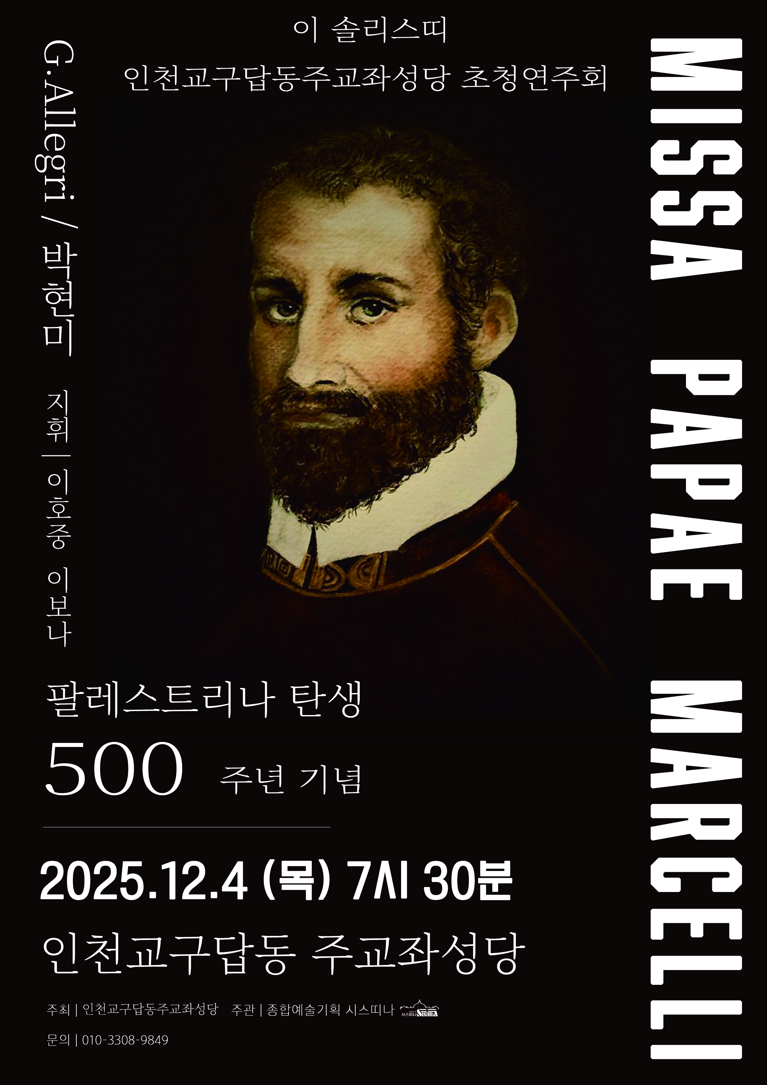 12월4일 인천교구 주교좌 답동 성바오로성당에서 봉헌되는 이 솔리스띠 초청연주회 Missa Papae Marcelli" 많은 교우님들의 관심과 격려 부탁드립니다
